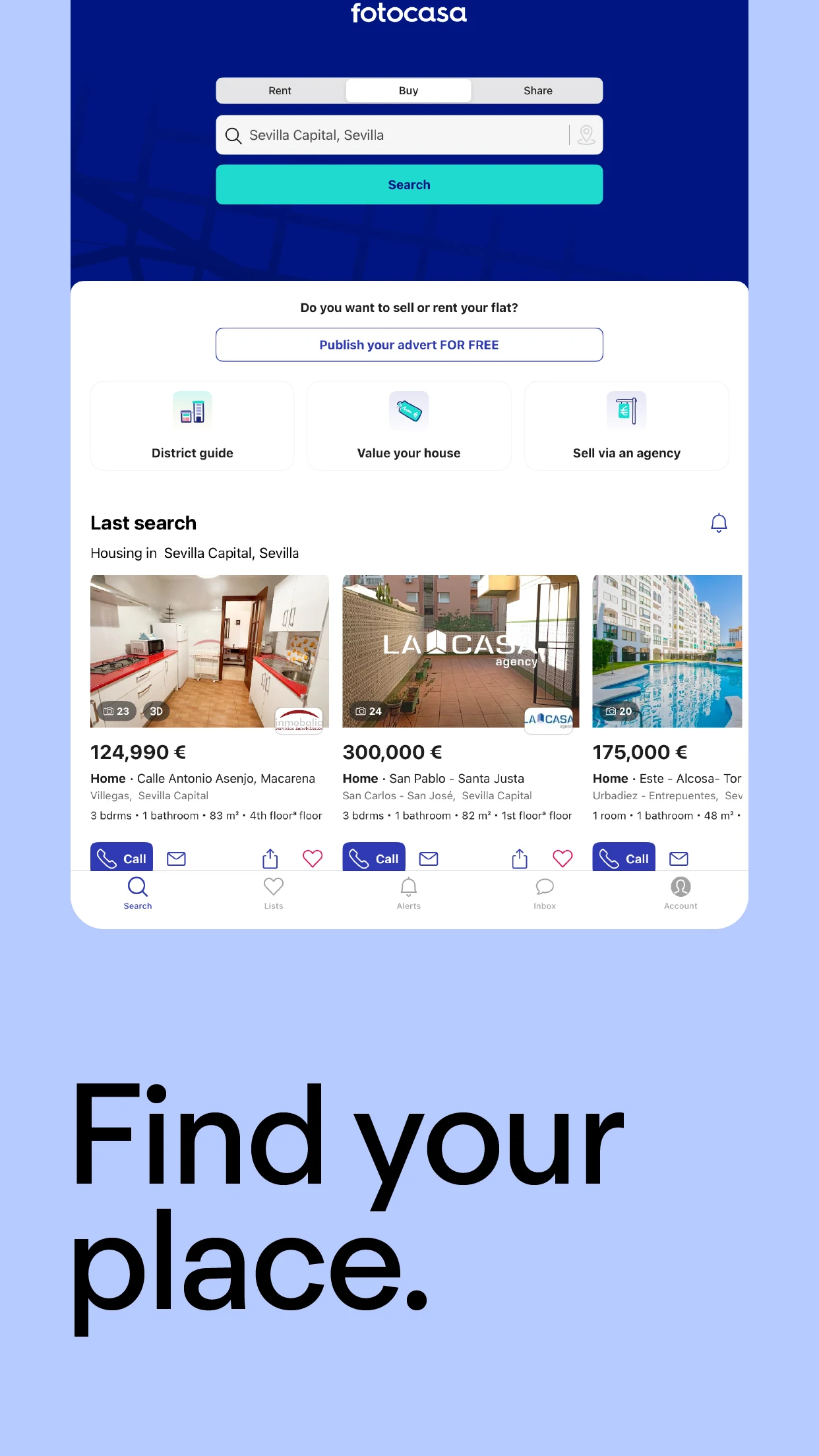 Description: On Fotocasa, discover your ideal place from a selection of over 1.5 million properties. 🏠 Fotocasa is the go-to online platform for finding your dream home. Whether you're in the market to buy or sell a flat, searching for a property, or looking for a room to rent, this app is designed for you.