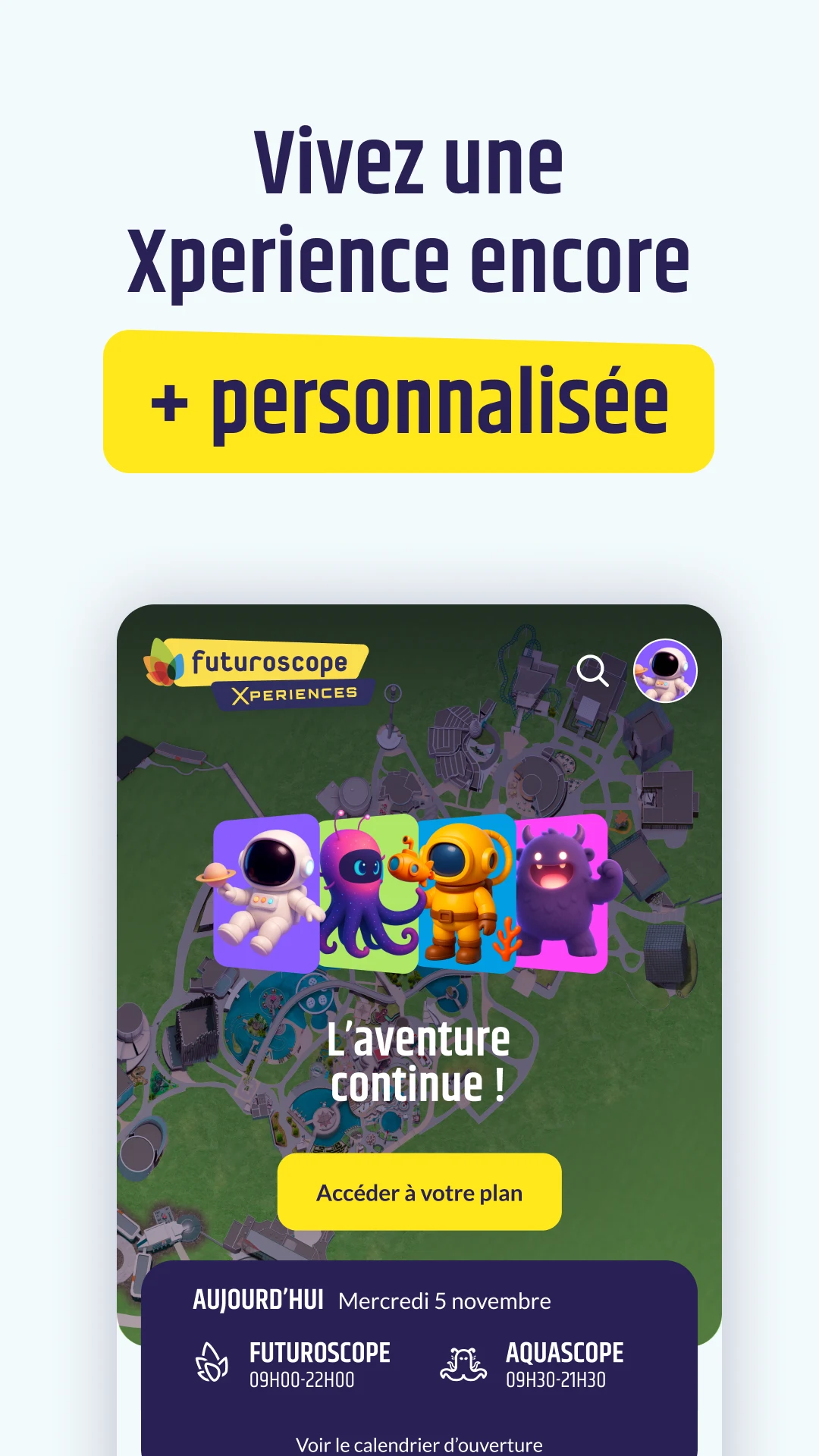 Carry the entire park in your pocket with the official Futuroscope park application. Practical, fun, and free, it guides you through your Futuroscope experience during your visit.