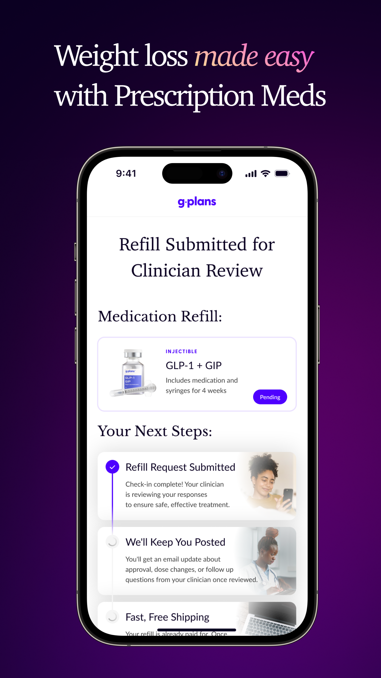 Getting started involves downloading the G-Plans app and completing our complimentary quiz, allowing you to qualify for weight loss medication in just a few minutes.