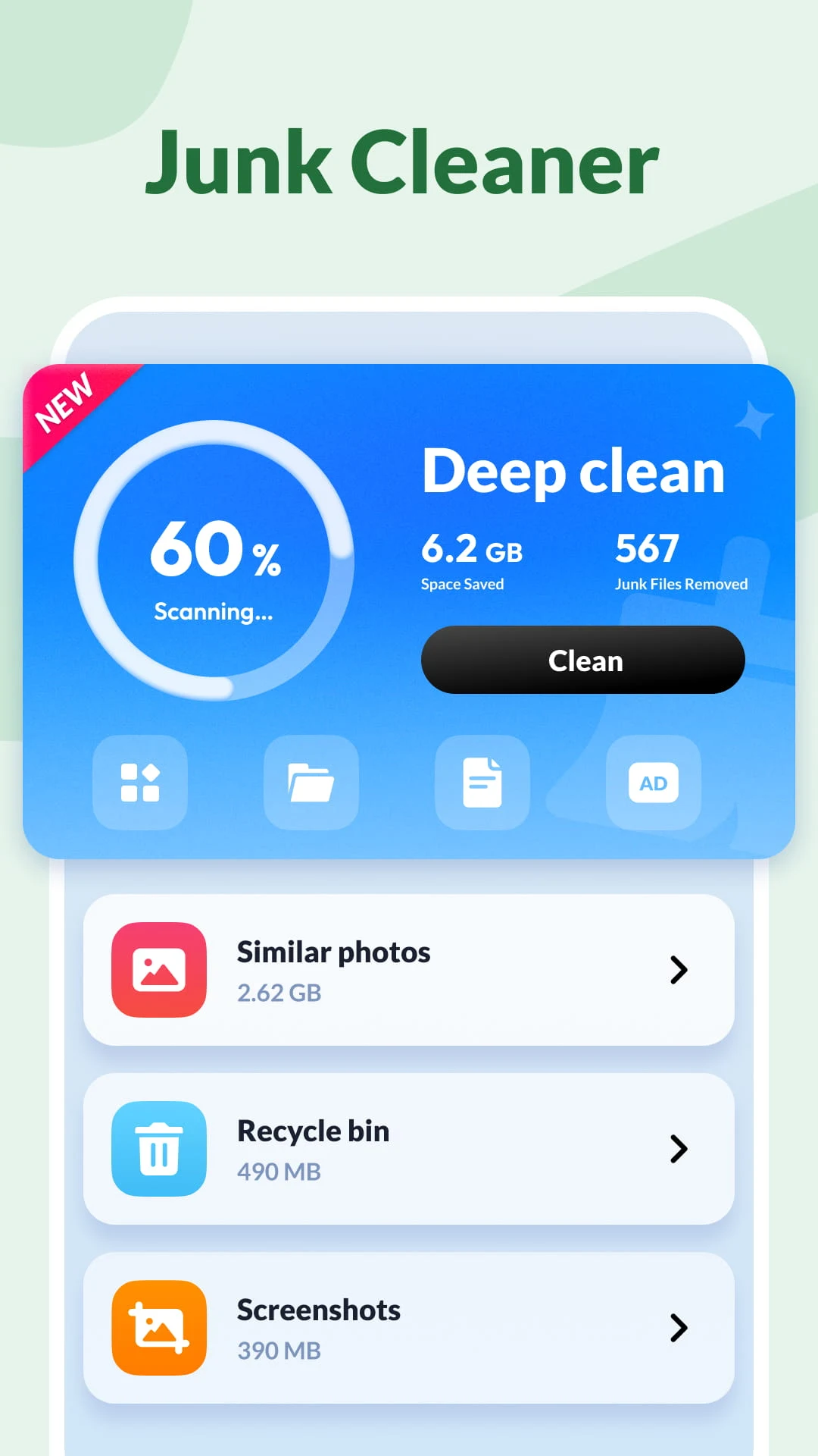 Identify and clear out similar old photos to reclaim space on your device. The app also helps manage screenshots and large video files to optimize phone storage.