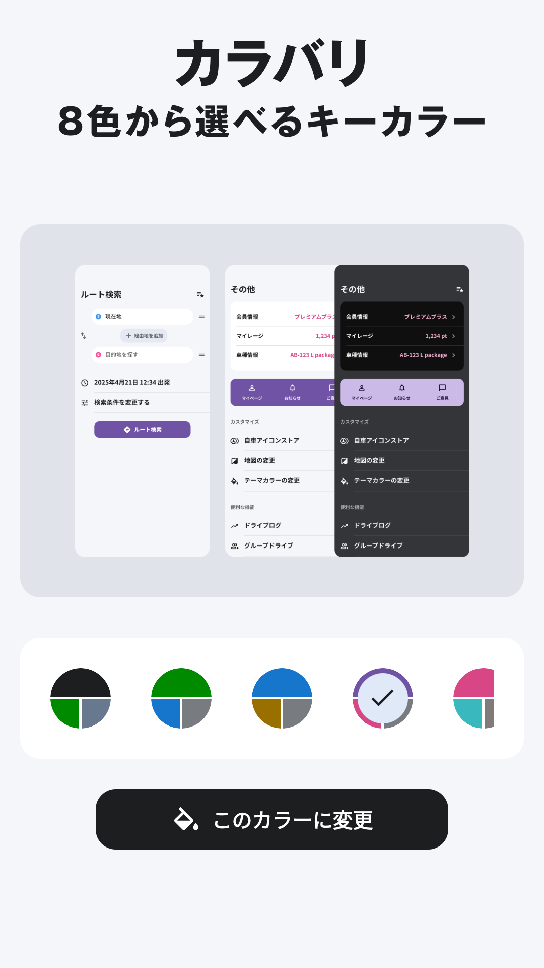 Multiple routes are proposed for both high speed and general roads. In addition, you can choose from a variety of routes such as the "kiseki route" which runs on the same road as the last time, and the "super avoid traffic jam route" which arrives quickly to avoid traffic jams. Note: locus route is only available for iOS.