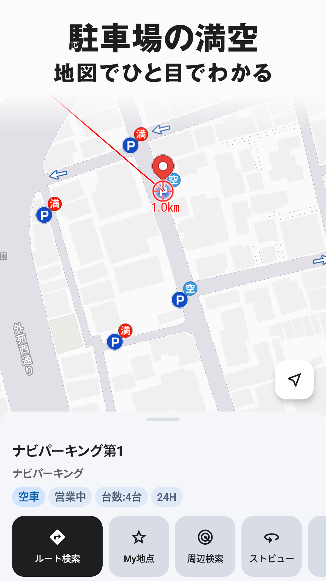 It is the largest parking database in Japan and supports not only coin parking but also reservation parking. You will also find parking fees, maximum fees, the number of Spaces, vehicle restrictions, and (partially) availability.