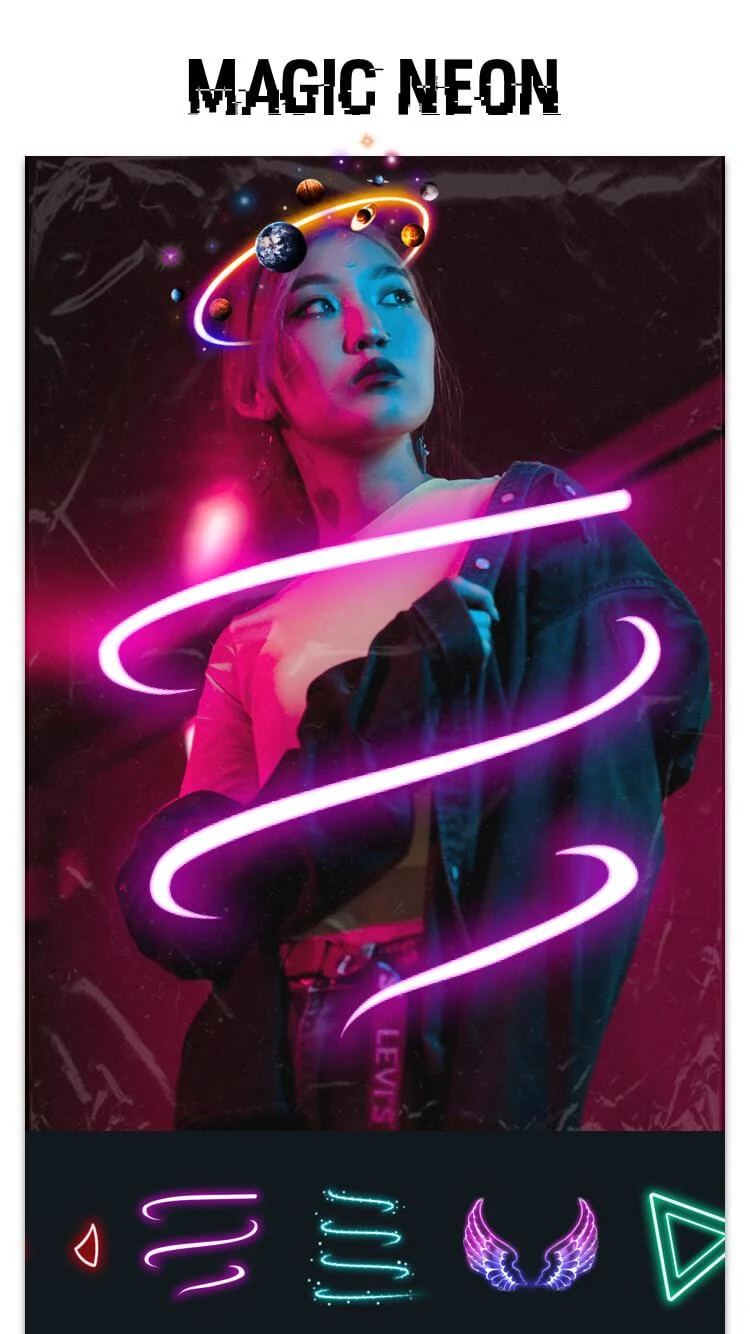 - Offers Neon, Negative, Old TV, Pixel, Swirl, Scanline, Illusion effects…