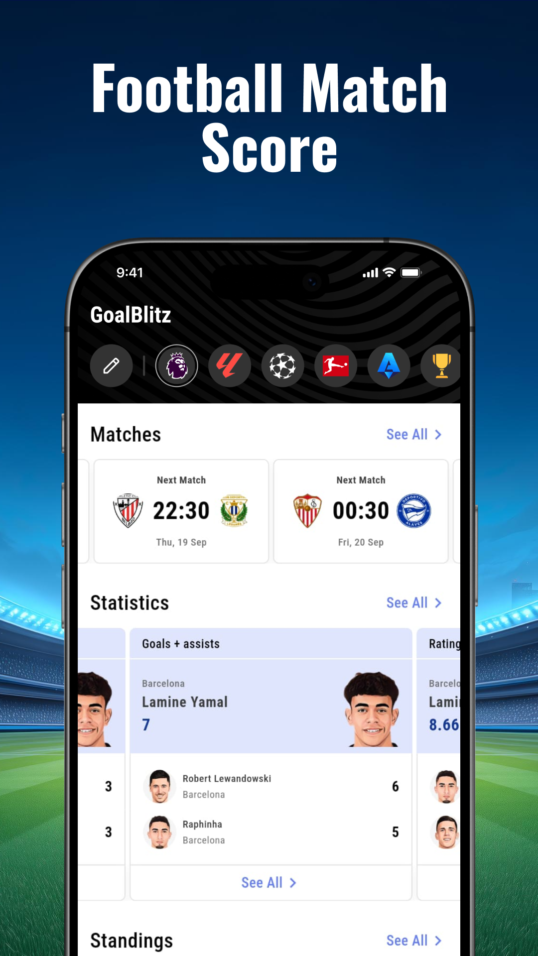 Our GoalBlitz application offers real-time updates, ensuring you stay informed about everything happening in football. With live updates, follow your favorite teams and players, and receive immediate notifications about the most recent results. The app includes live scores and upcoming fixtures, making it simple to keep up with the latest football happenings. Gain instant access to comprehensive stats, scorecards, and more through our soccer scores app.
