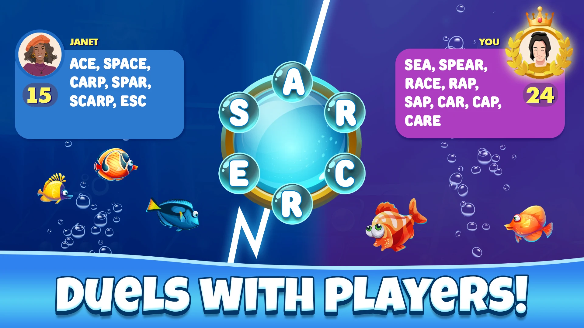 Engage in exciting word challenges, compete with others, and expand your vocabulary while exploring vibrant underwater environments.