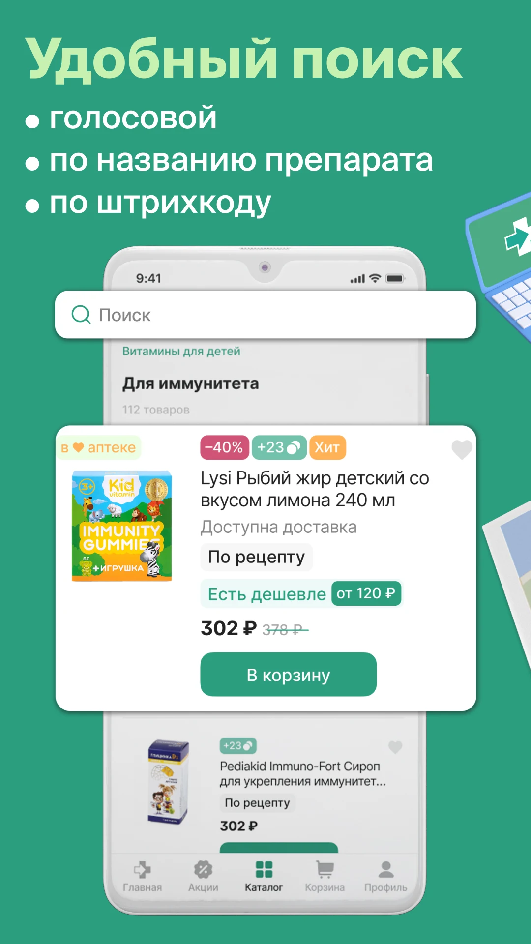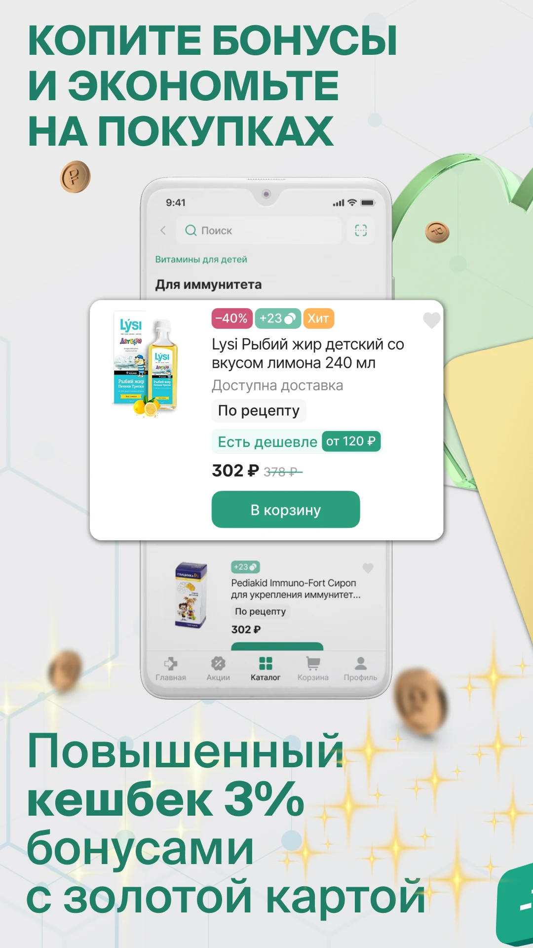 In the mobile app, you will receive a discount on your first order along with increased bonuses and free collection from any pharmacies near your location!