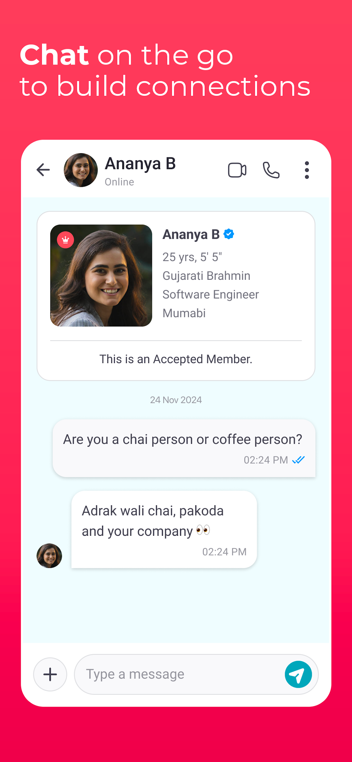 - Chat on-the-go with Shaadi Messenger - anytime, anywhere!