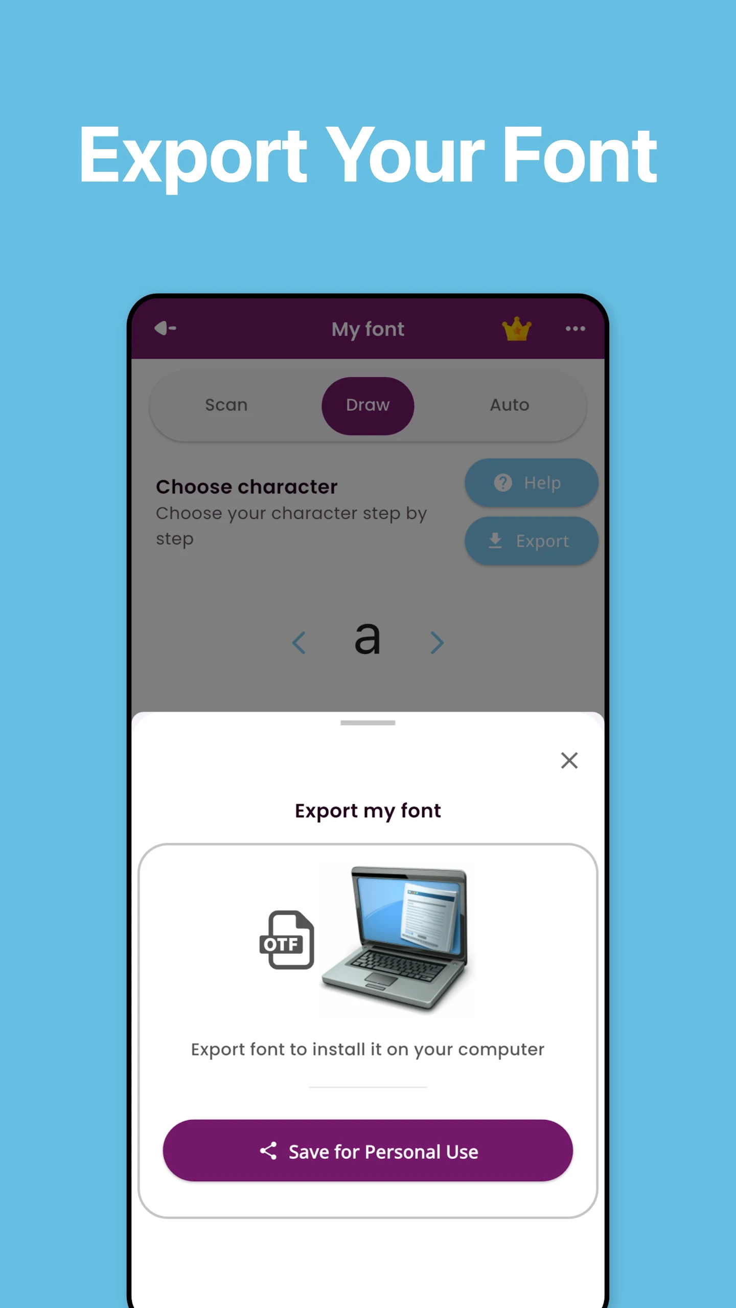 Consider opting for the premium offer to eliminate ads, automate font scanning, and export your fonts without limitations.