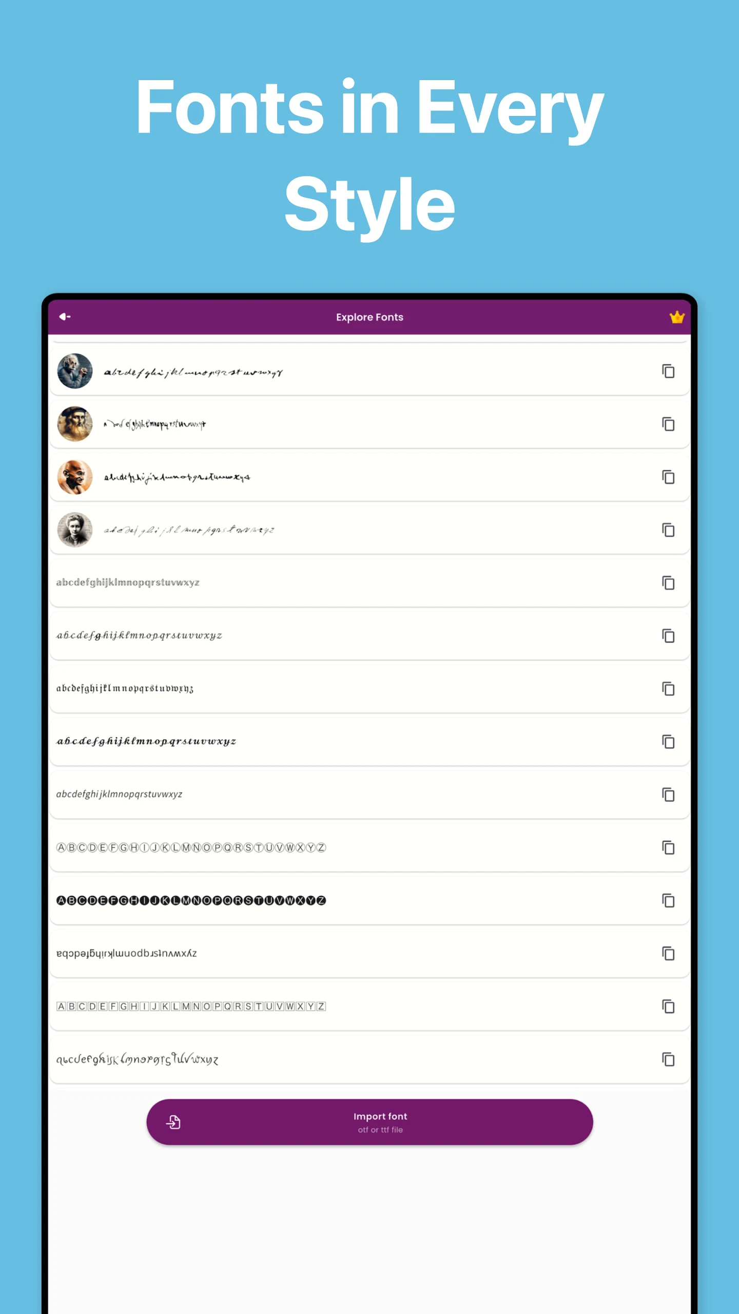 Design a personalized keyboard featuring all your artistic fonts at your disposal. Enhance your keyboard with the most exclusive styles via this font crafting app. Its ease of use ensures that you won’t face any challenges in developing fonts or utilizing the pre-installed or imported ones.