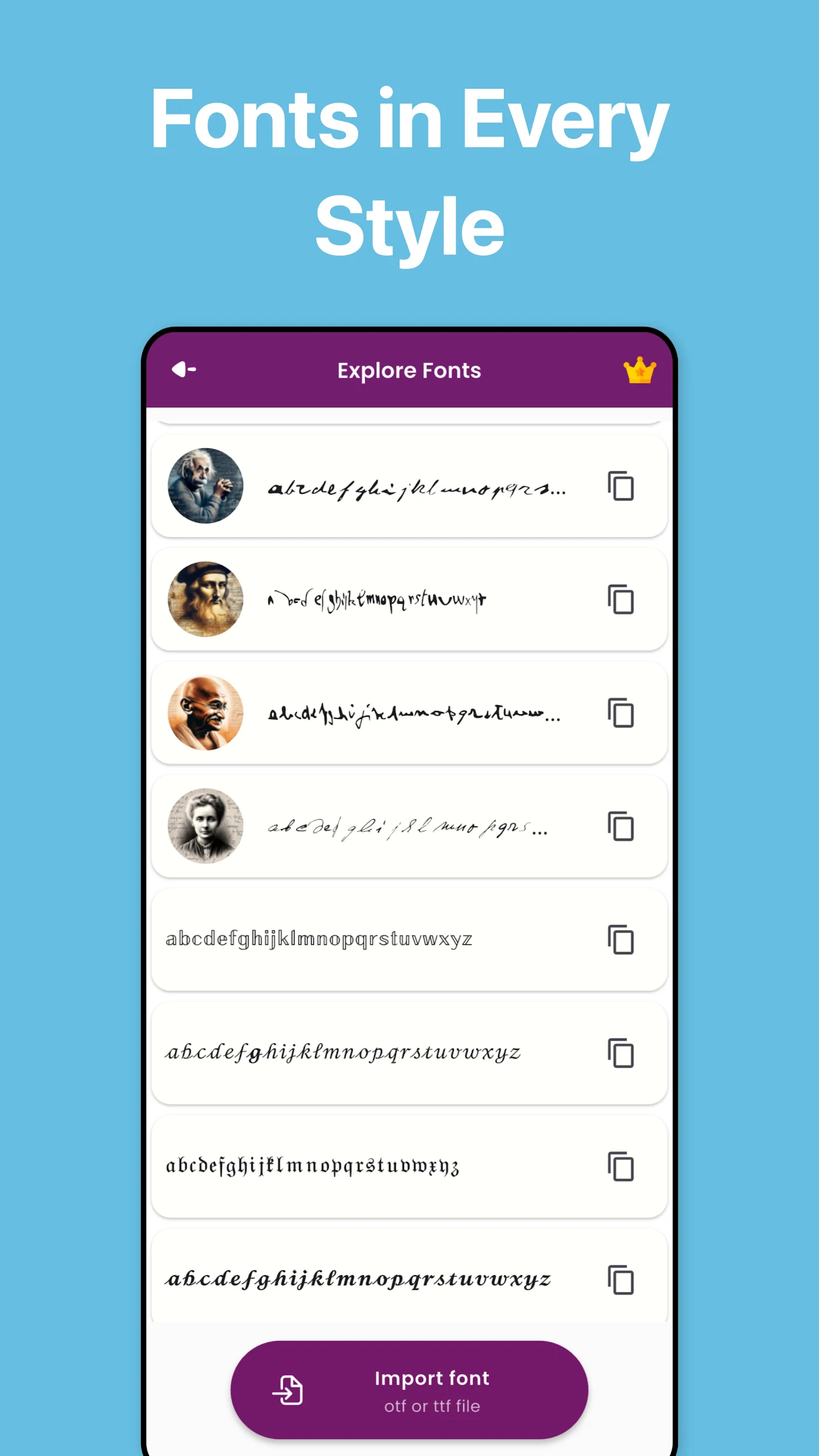 You can also import fonts from .otf or .ttf files.