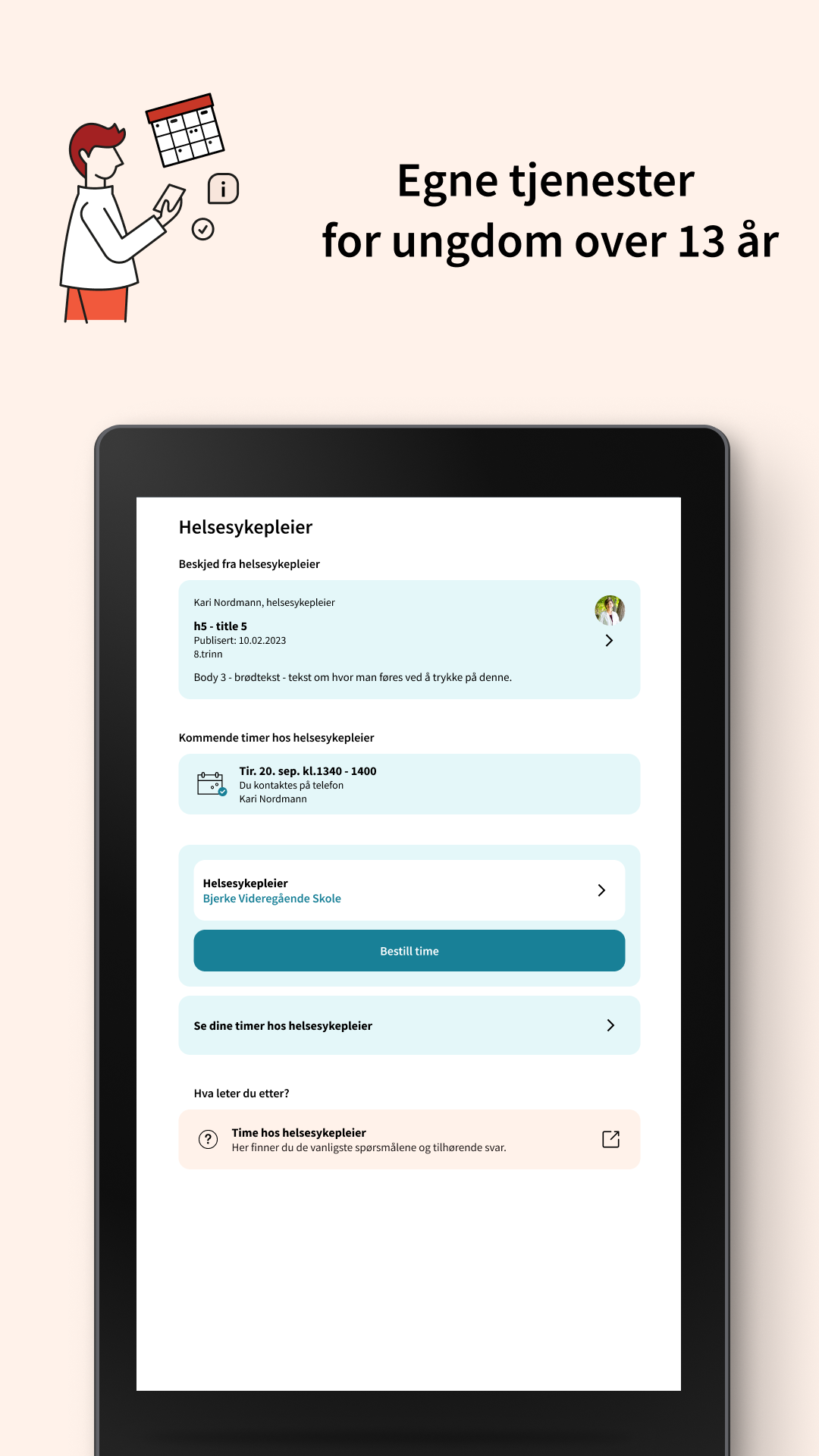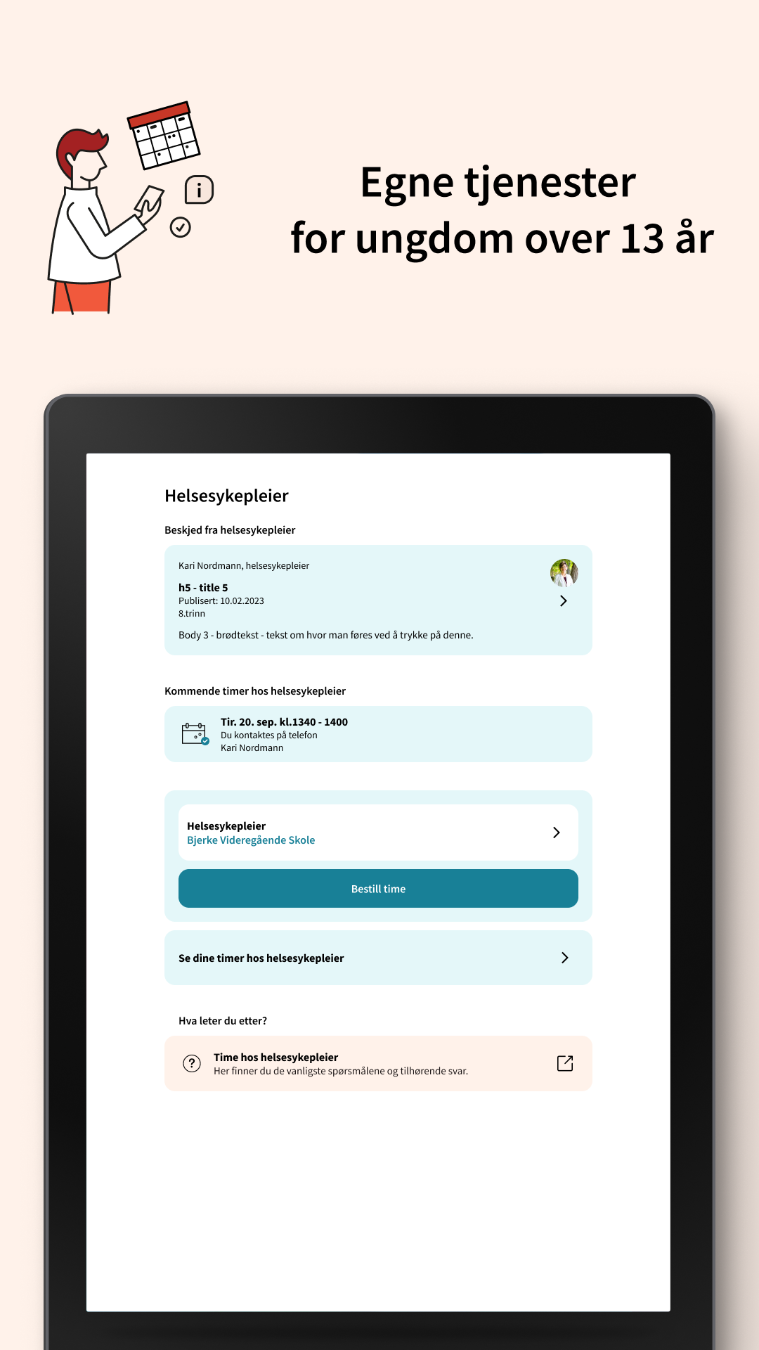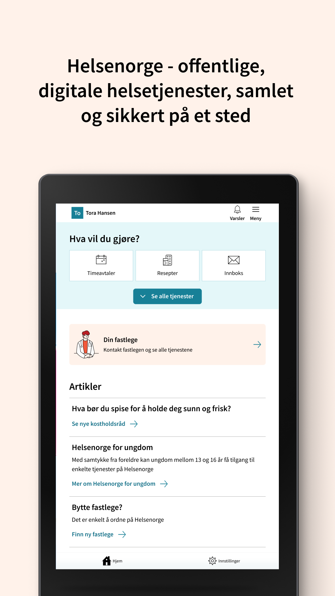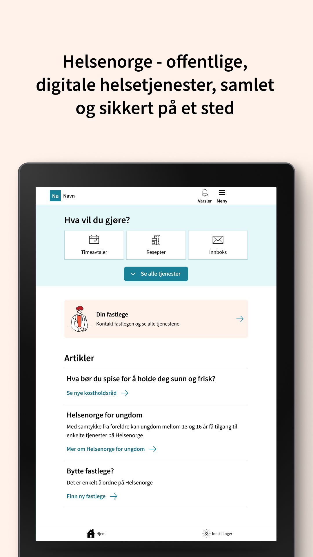 Health Norway is constantly expanding with new content and a richer range of services. More information about the services and which services you have access to can be found on Health Norway.