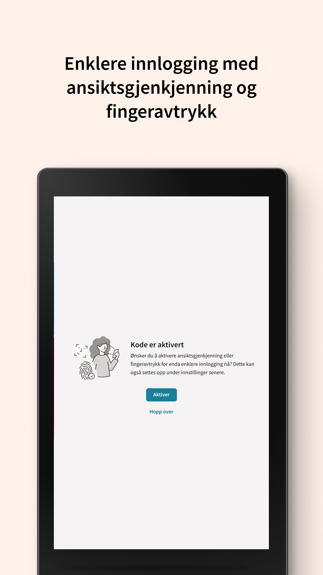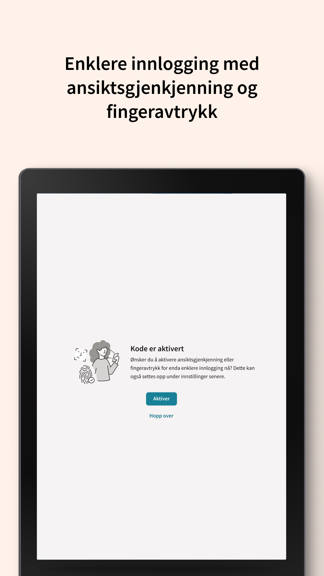 Now it is easier than ever to log in to Health Norway. Use personal code, facial recognition, or fingerprint. This will give you access to new messages and events, and a variety of public services that help you manage your own health.