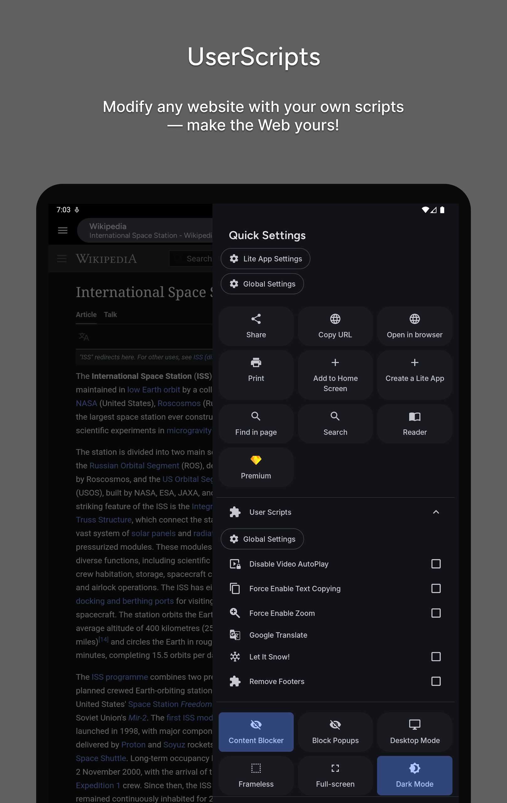 • DESKTOP MODE: Access desktop versions of websites instead of mobile variants