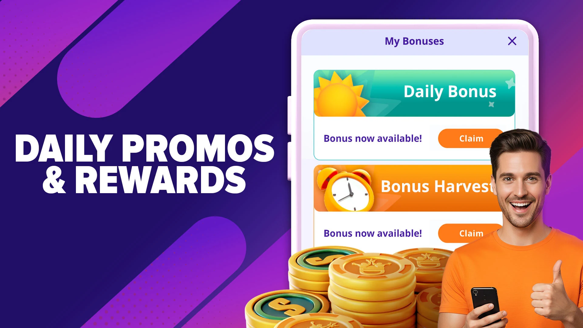 Free daily coins and daily bonuses are available, which players can collect to continue playing and unlock new games.