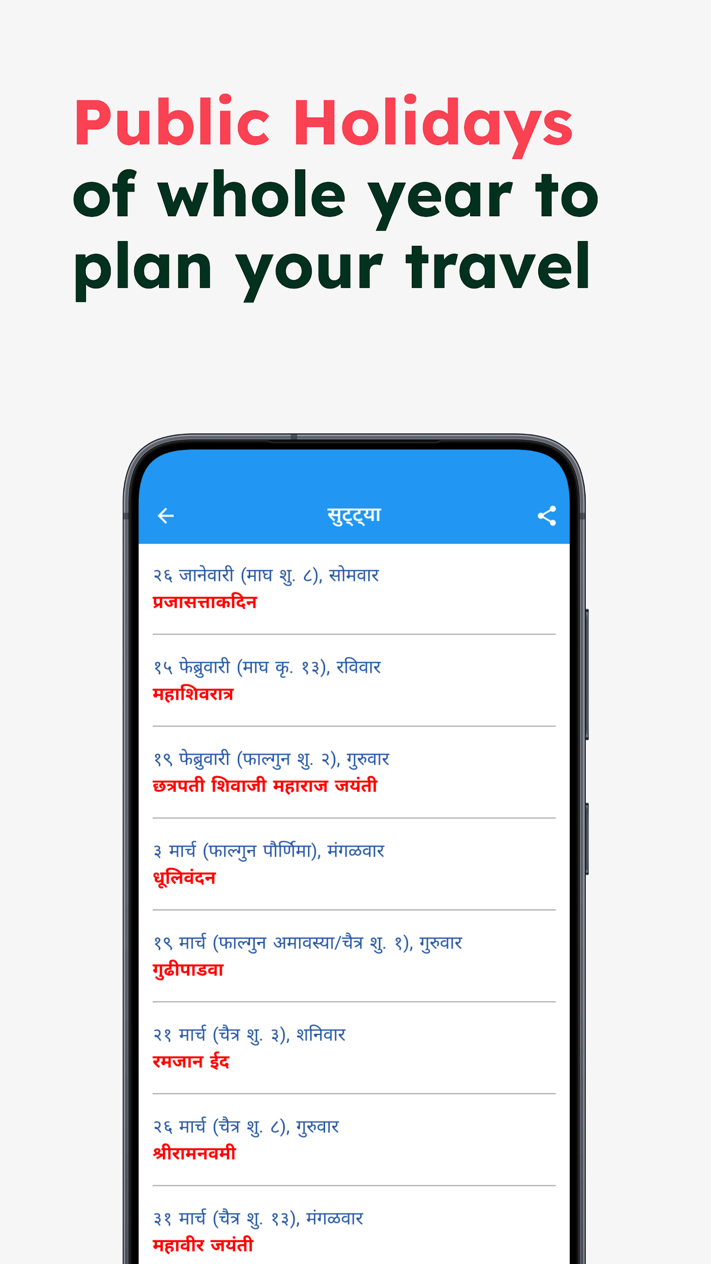 9.Share Articles - Like an article or date from the Hindi Panchang? Freely share this information with your family and friends on Facebook, WhatsApp, Twitter, Email, etc.!