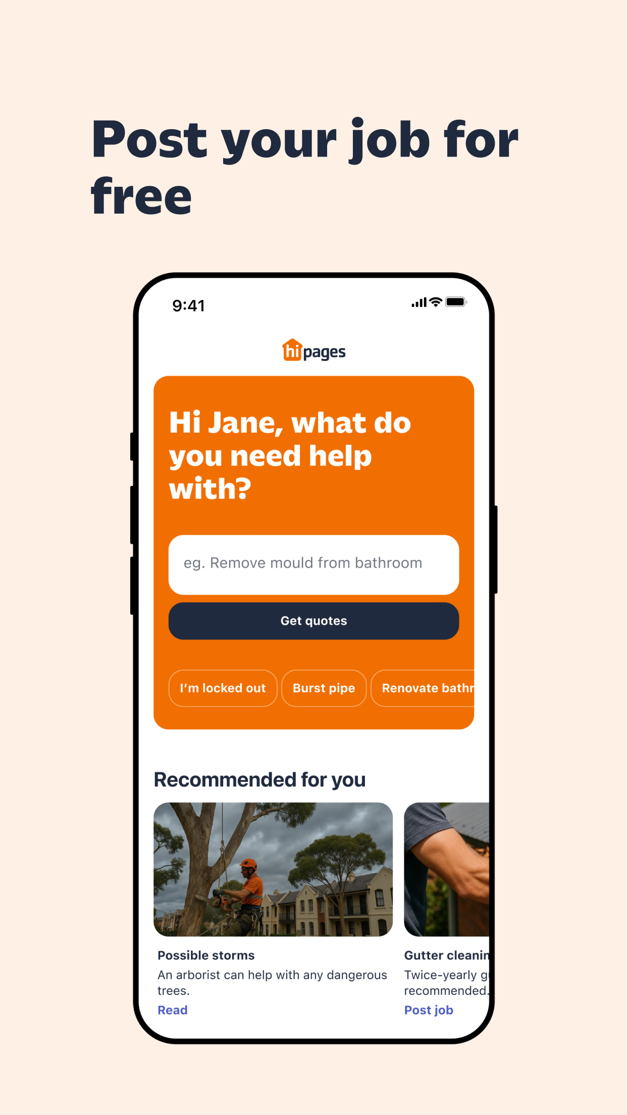 With a new job posted every 25 seconds on average, hipages connects Australians with trusted tradies to simplify home improvement. Homeowners can find a smarter way to connect with local tradies to get the job done well. Tradies can grow their business with quality leads from customers looking for a specific trade, and reduce their admin with included job management features. Become part of the community with over 4 million Australians who have changed the way they find and hire tradespeople through hipages. Whether you need assistance with home maintenance, renovations, or urgent repairs, hipages connects you to a vast network of over 33,000 trustworthy tradespeople throughout Australia.