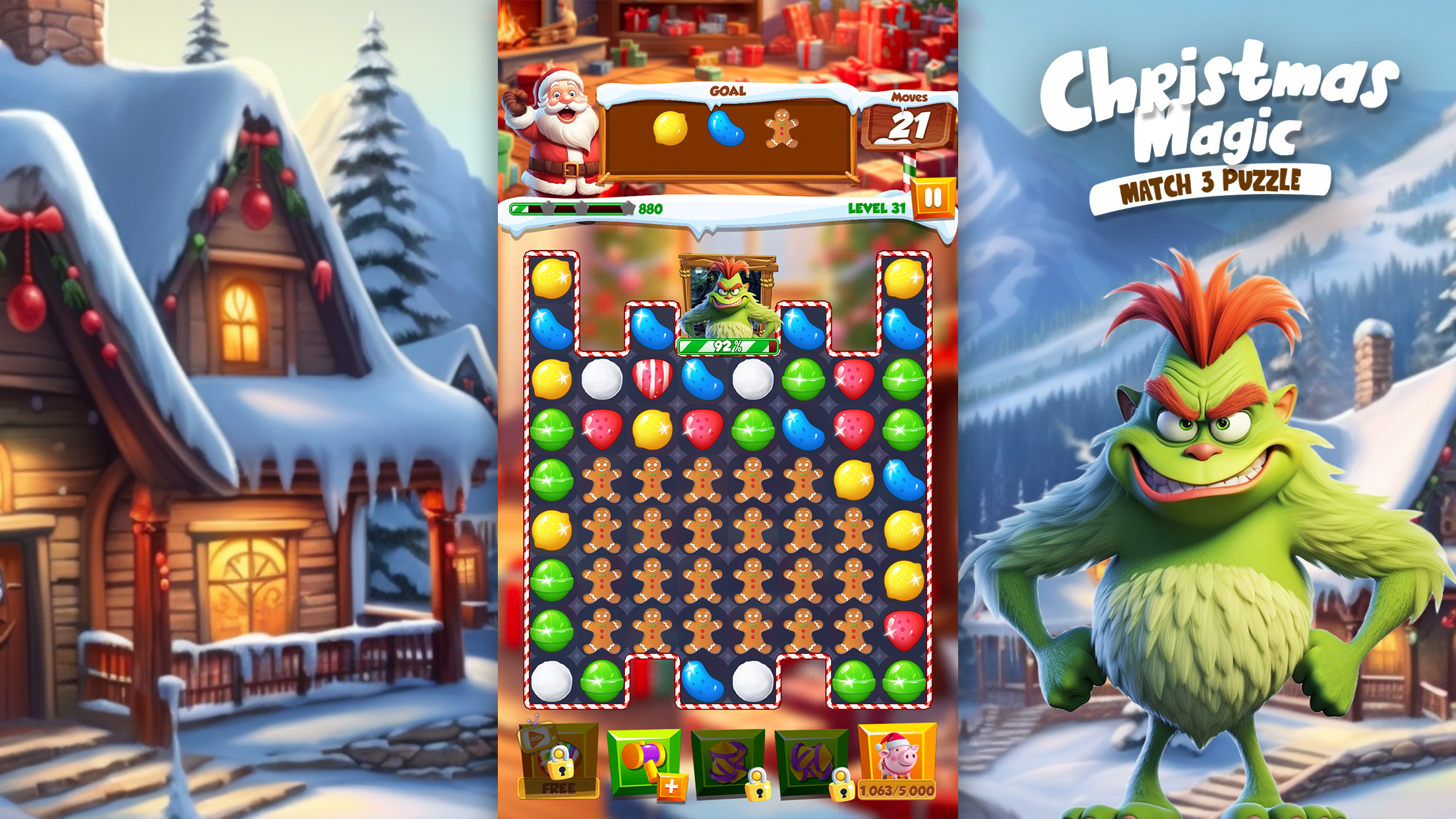 โ๏ธ Mighty Boosters: Unlock impressive boosters and unique combos to help you tackle even the toughest challenges. Smash candy canes, pop ornaments, and collect delightful New Year treats!
