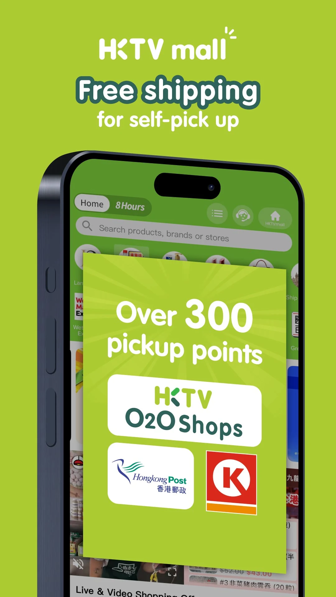Seamless payment in HKTVmall O2O shops and selected retailers by scanning the QR code at the merchant cashier.