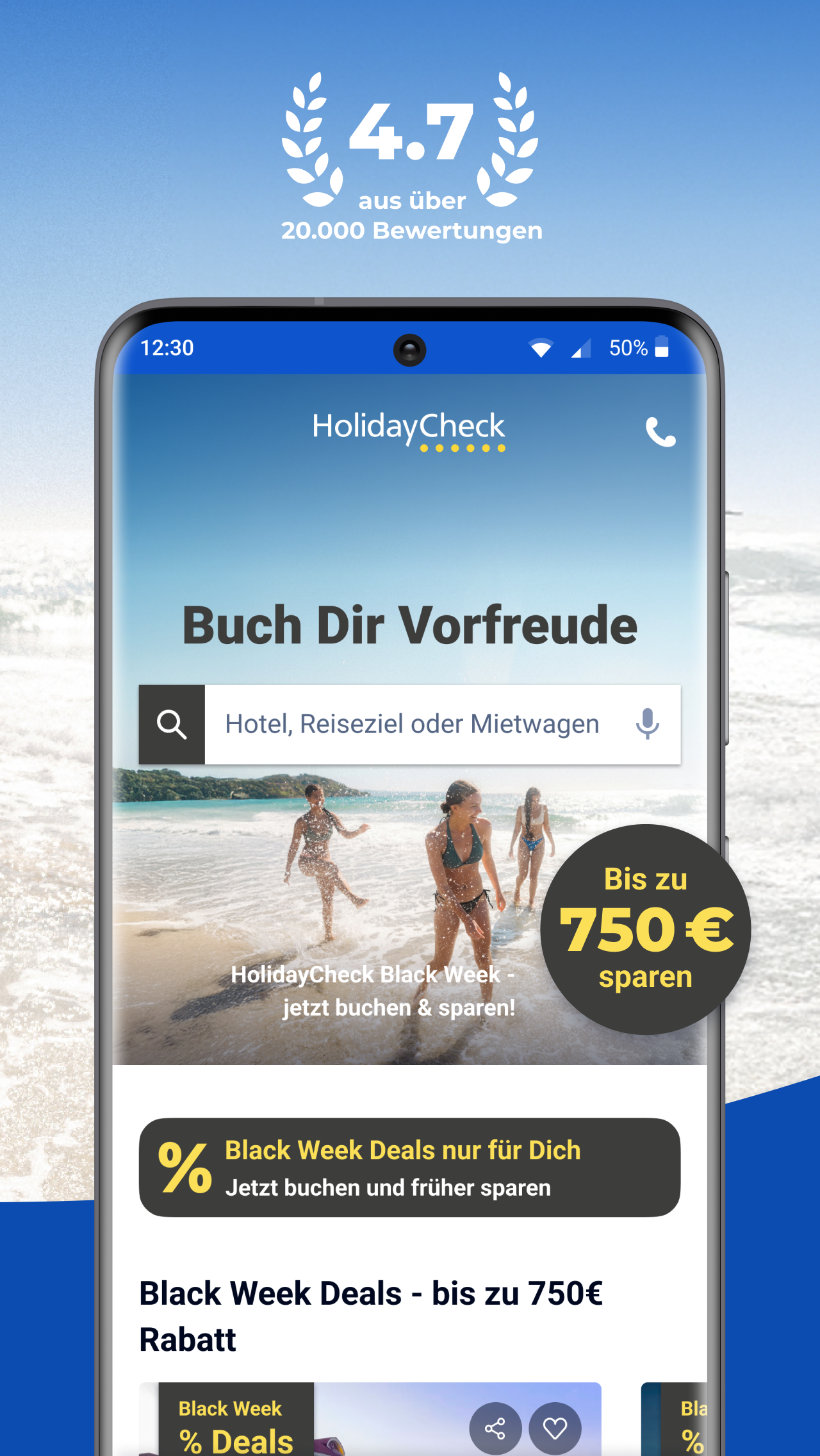 Book your holiday cheaply - now search for hotels and find exclusive discounts with the HolidayCheck App