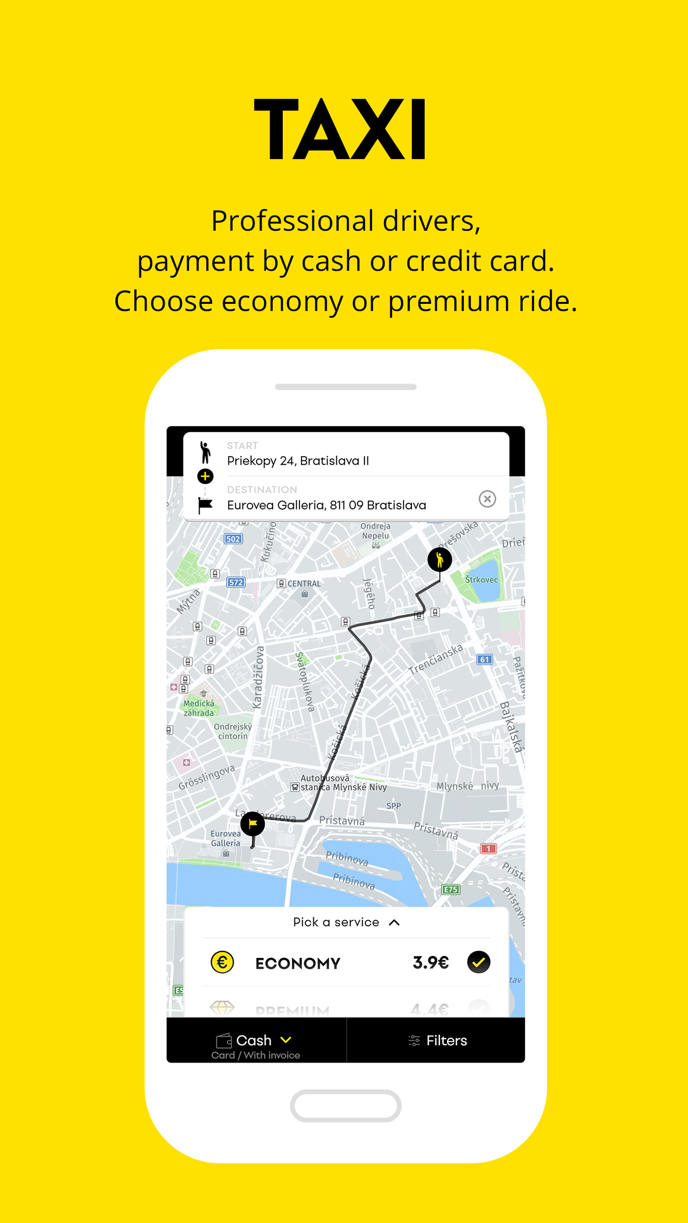 • You can use the HOPIN app to order taxis in Bratislava, Košice, Martin, Prievidza, Poprad, Michalovce, Humenné, as well as cities like Prague, Ostrava, Kyiv, Chernihiv, Ljubljana, and soon other locations.