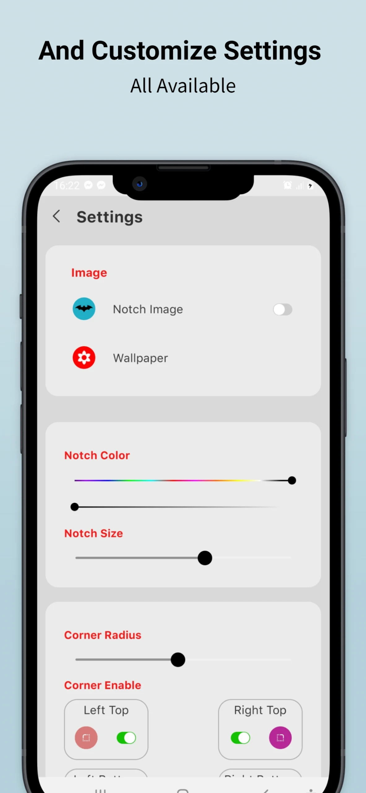 --The application features a user-friendly interface with settings that enable you to easily add a notch, mimicking the Phone X's style or opting for a cute design along with wallpapers.