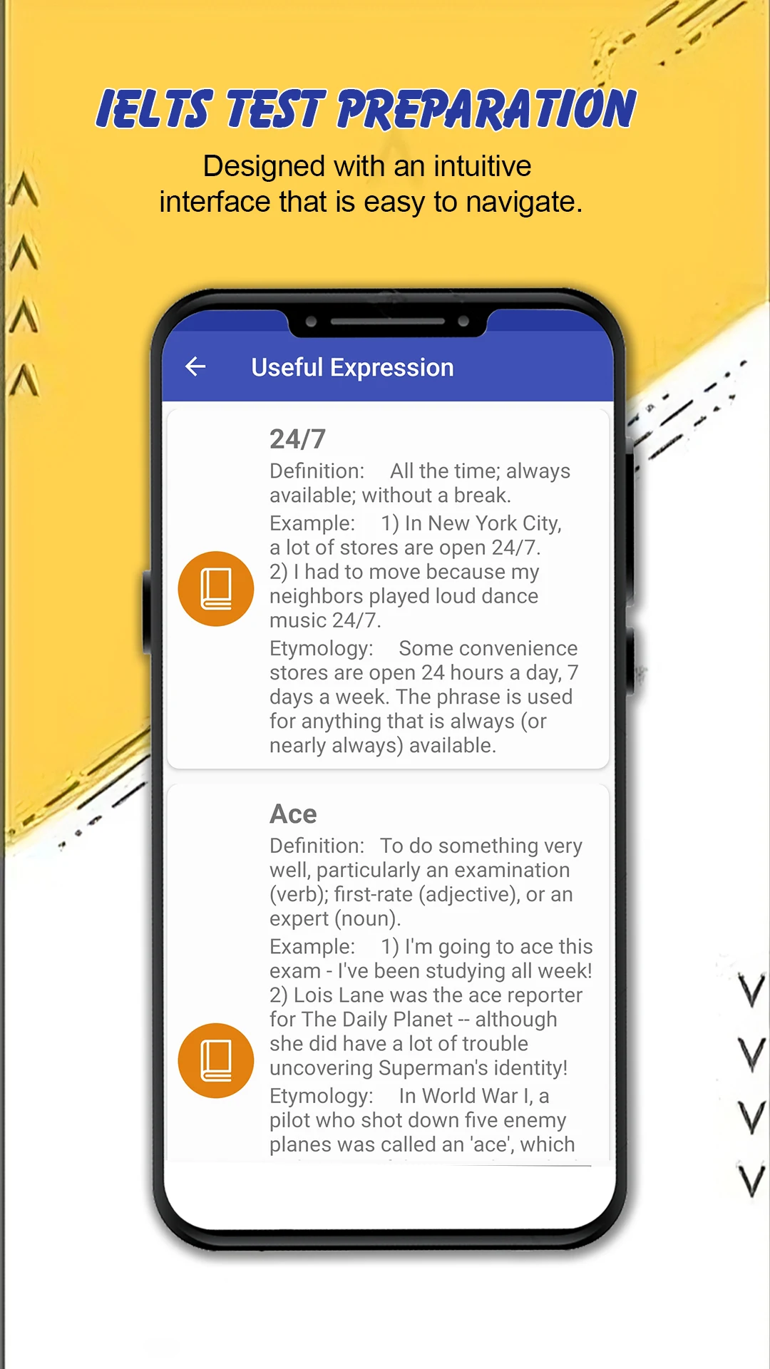 -With the IELTS Vocabulary section, you can discover new words that will aid in achieving a desirable IELTS score. Our app is divided into four categories: IELTS Listening, Speaking, Reading, and Writing, containing all the material necessary for comprehensive exam preparation.