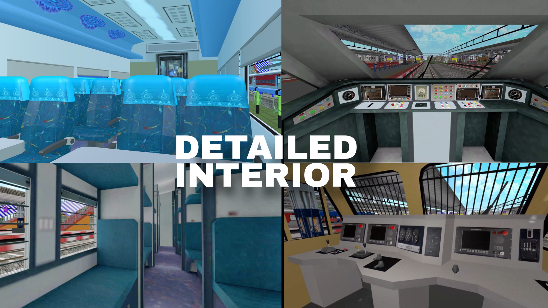 The game features over 70 authentic Indian railway stations, designed to deliver a genuine experience of Indian train stations, with more stations anticipated in future updates. Players can operate major Indian locomotives such as the WAP-4, WAP-7, WAG-9, WAP-5, WAP-P7, P5, WDP-4D, WDG-3A, Vande Bharat Express, and additional models expected to be introduced shortly. In terms of coaches, players will find Classic ICF blue coaches equipped with detailed interiors, Utkrish coaches, Garib Rath, as well as LHB coaches like Rajdhani, Shatabdi, Tejas, Humsafar, and Duranto; several goods coaches are available as well. Coaches and locomotives can be unlocked using gems earned by completing passenger duty levels. The game allows you to drive fast express trains, slow local trains, or metro trains, all portrayed with realistic graphics and soothing track sounds that enhance the immersive train experience.