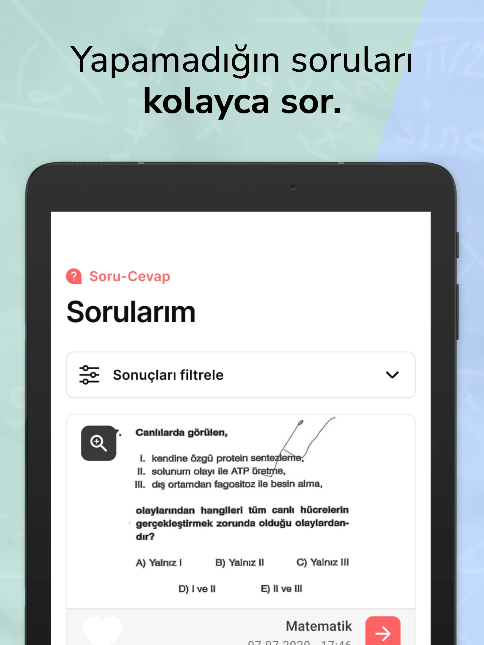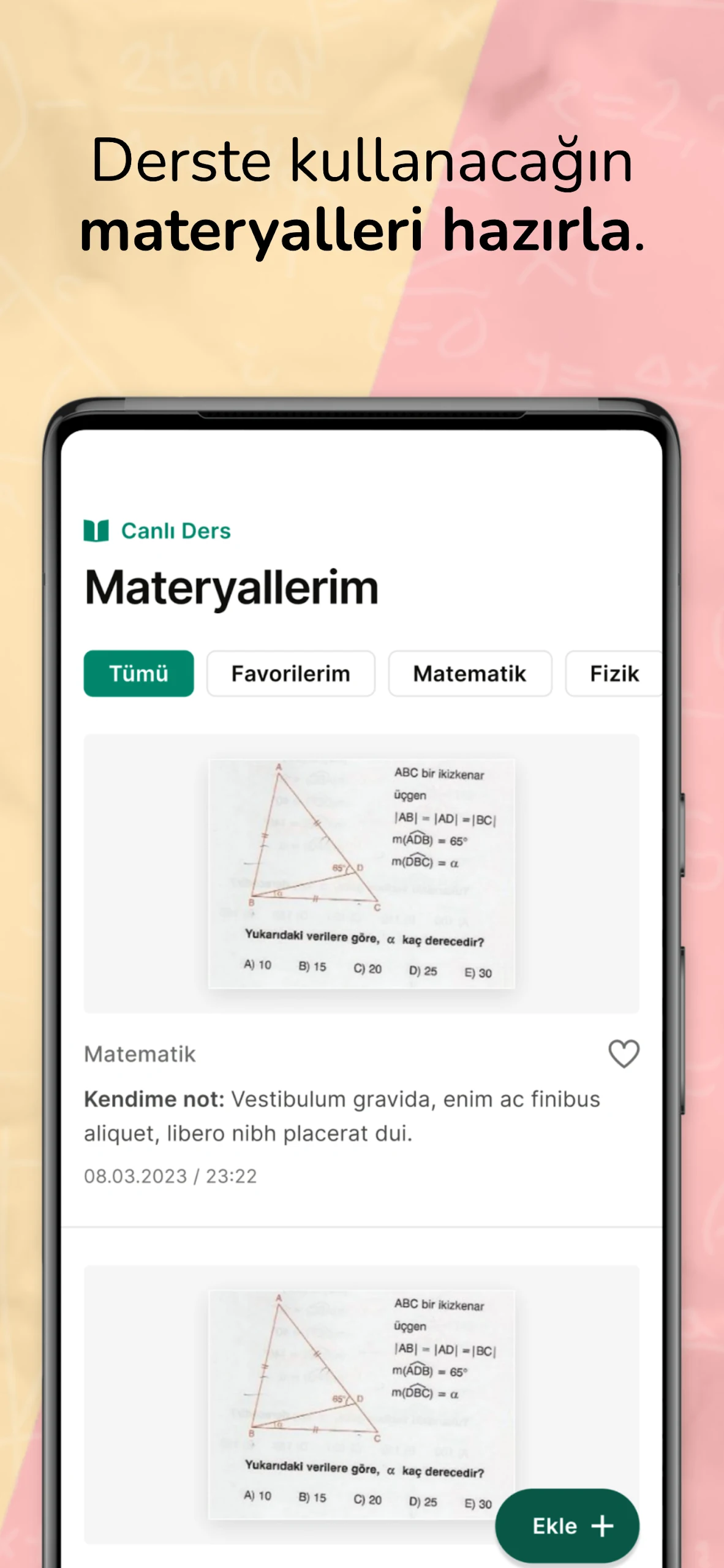 You don’t have to navigate the LGS and YKS preparation process alone! inekle serves as both an exam preparation tool and a supportive coach. With the mobile classroom experience, you can study from anywhere at any time, swiftly addressing any knowledge gaps. We're also here to assist you with TYT and AYT preparations!