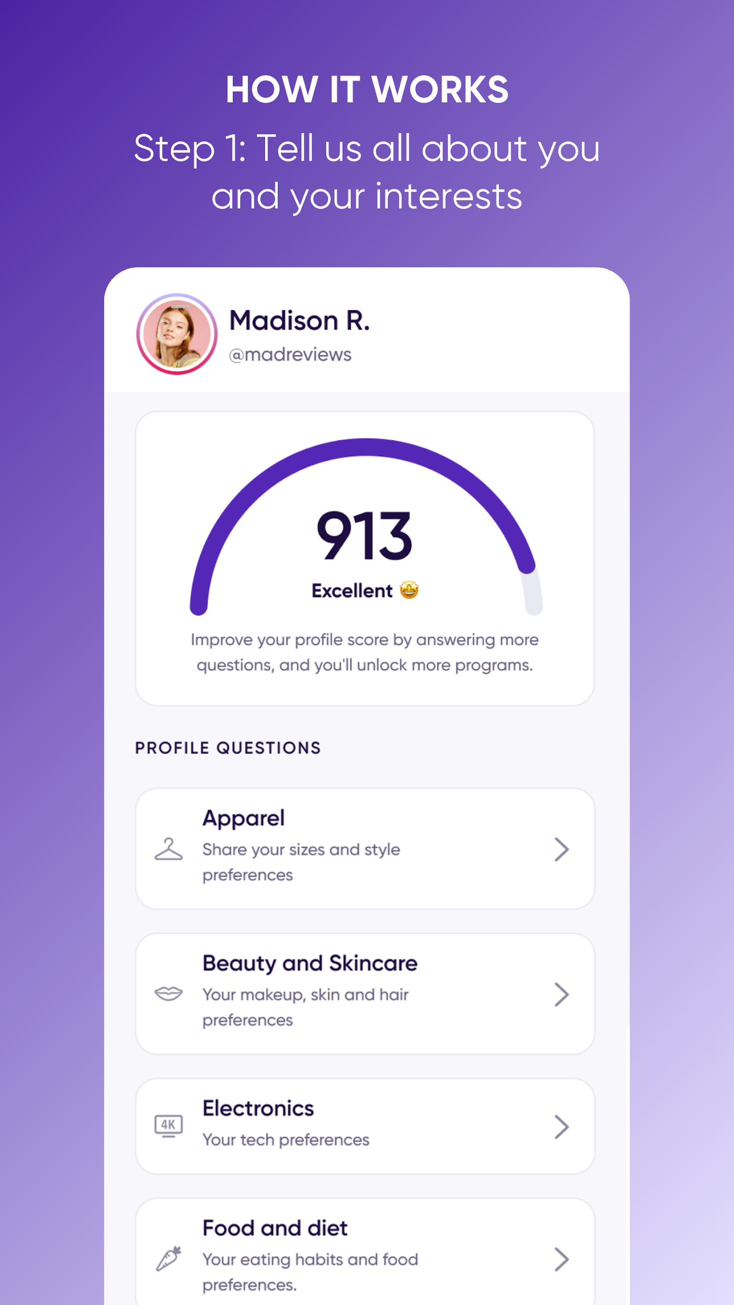 2.Answer a few questions about your tastes (that way, we’ll only send you stuff you’ll love.)