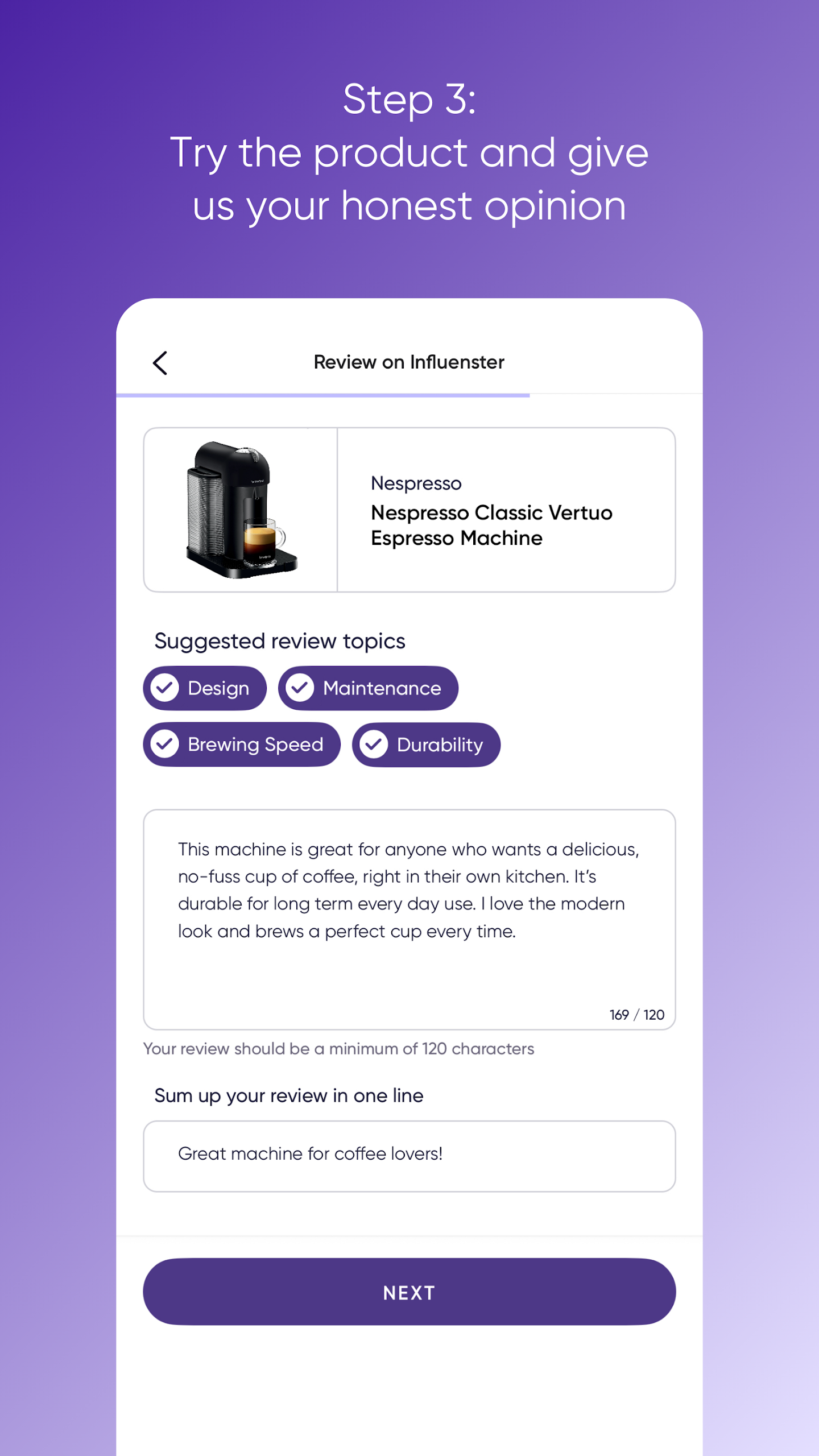 • Leverage your influence. Review and share your love for products anytime, anywhere.