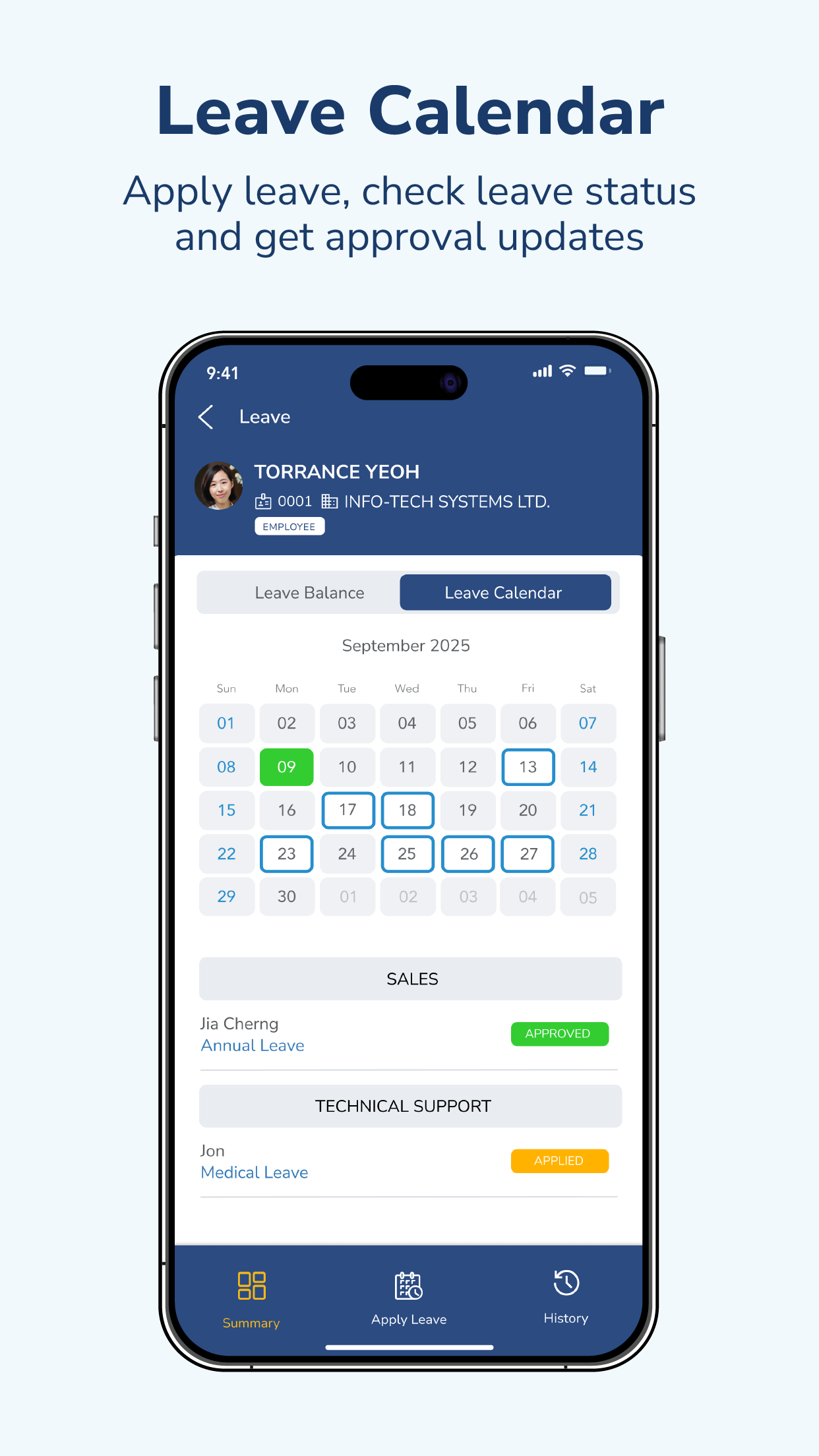 When an employee submits a leave request, a real-time push notification and email will be sent to the relevant approving officer’s mobile application. Once the leave is either approved or denied, the employee will receive instant notifications and emails regarding the decision.