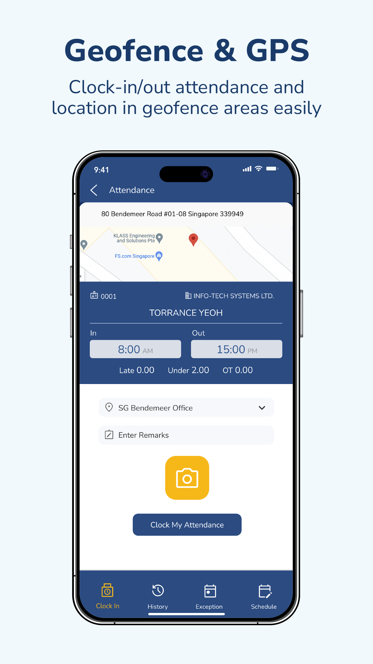 This is the industry's first mobile attendance application featuring facial recognition and GPS technology fully integrated with a comprehensive HR software solution. It utilizes GPS data to ensure that employees are present at their designated work locations. The mobile attendance app incorporates facial recognition capabilities to confirm and authenticate the identity of employees, eliminating concerns about time fraud or buddy punching.