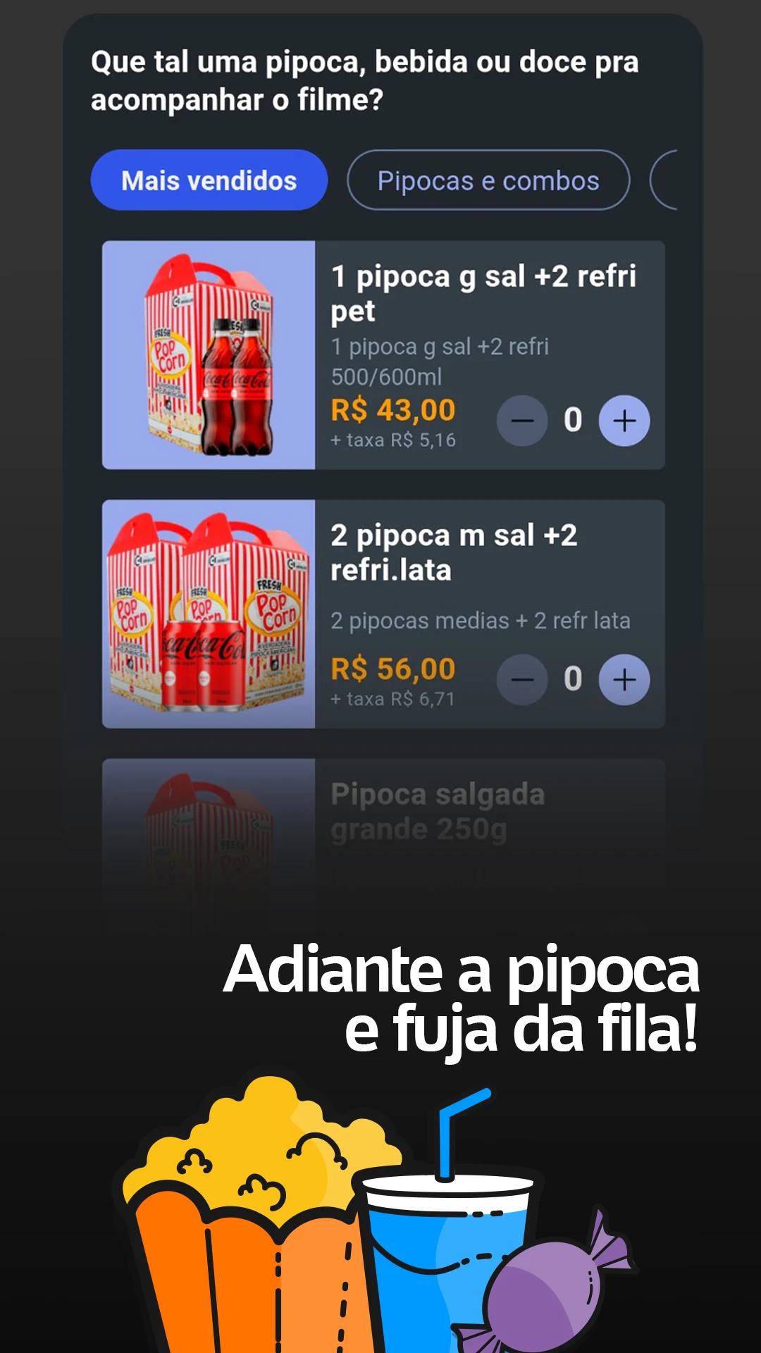 In addition to tickets, you can secure your popcorn, soda, and candy combo to enjoy during the movie.