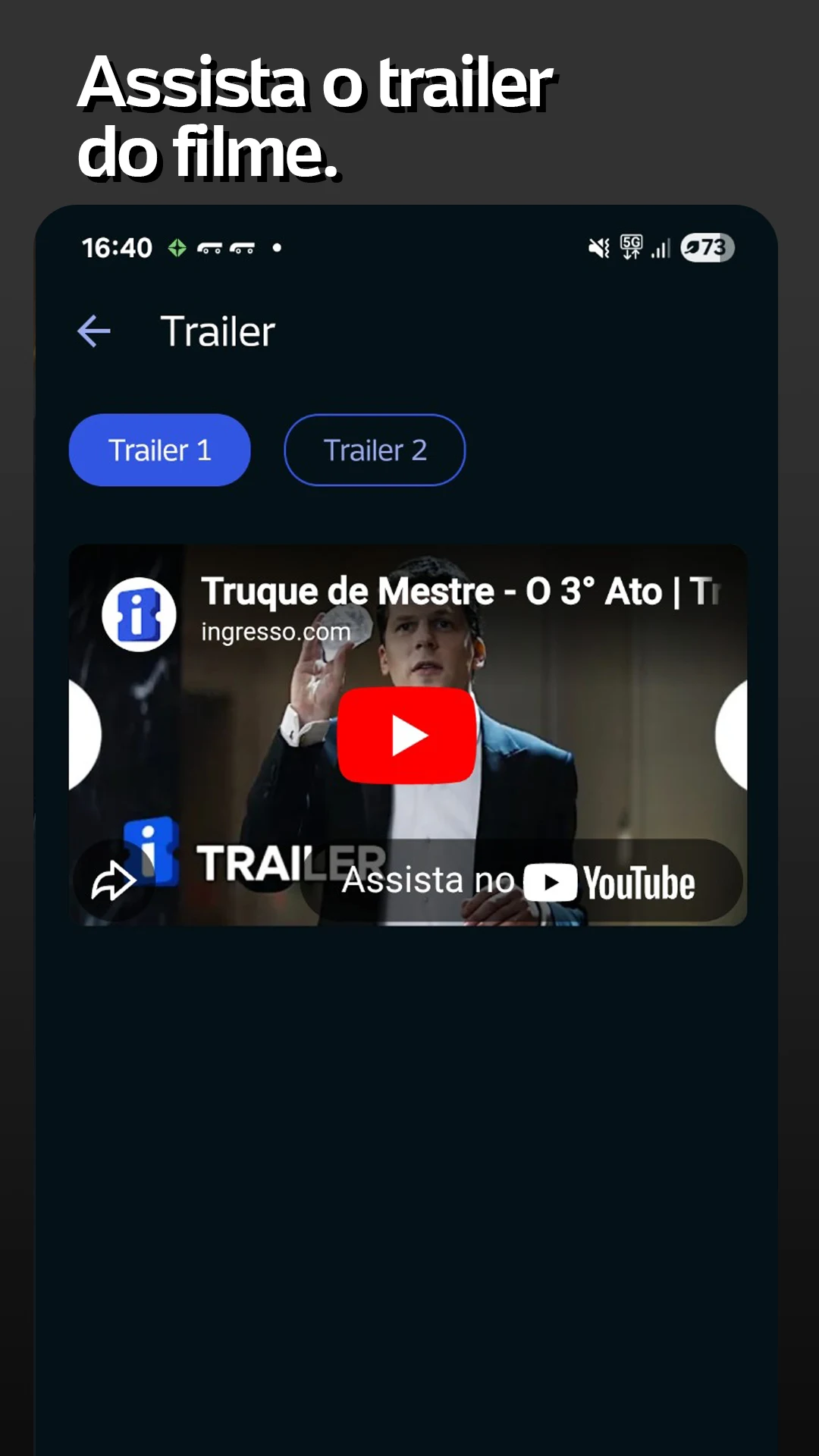 No need to worry about printing tickets at home or picking them up at the box office. The Ingresso.com app provides access to movie theaters through digital tickets.