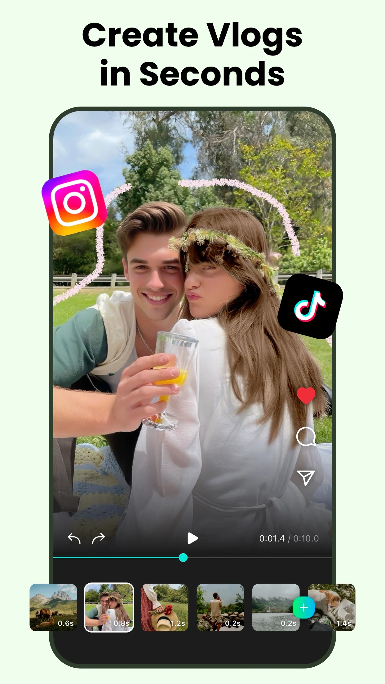 With inMelo's video editor, easily combine photos with effects and transitions, edit videos with music and images for TikTok, ensuring every element follows the beat. Furthermore, utilize the array of trendy music video templates available for various themes at no cost. Share your captivating videos on Instagram and TikTok to attract more followers and likes!