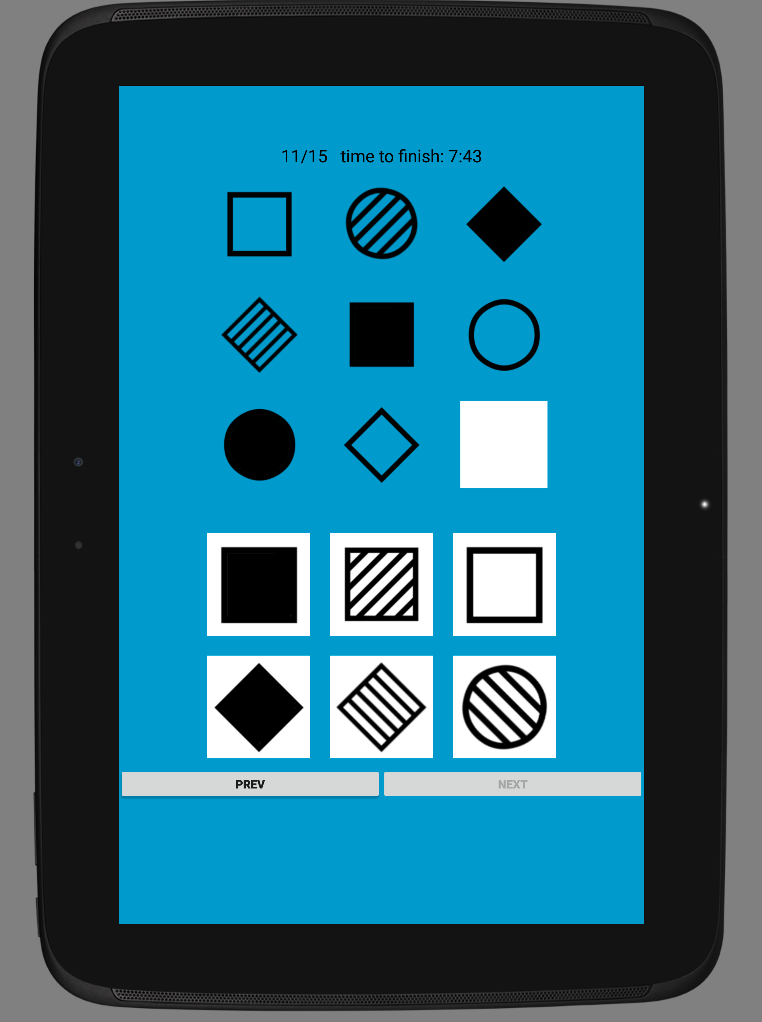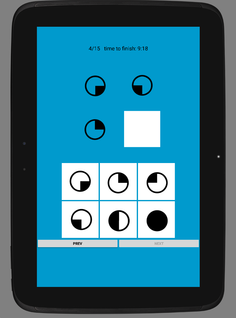 Most assessments in this app utilize the Standard Progressive Matrices Test.