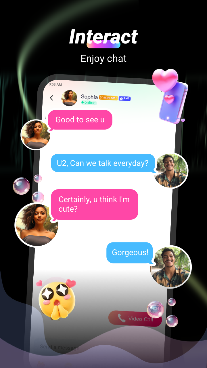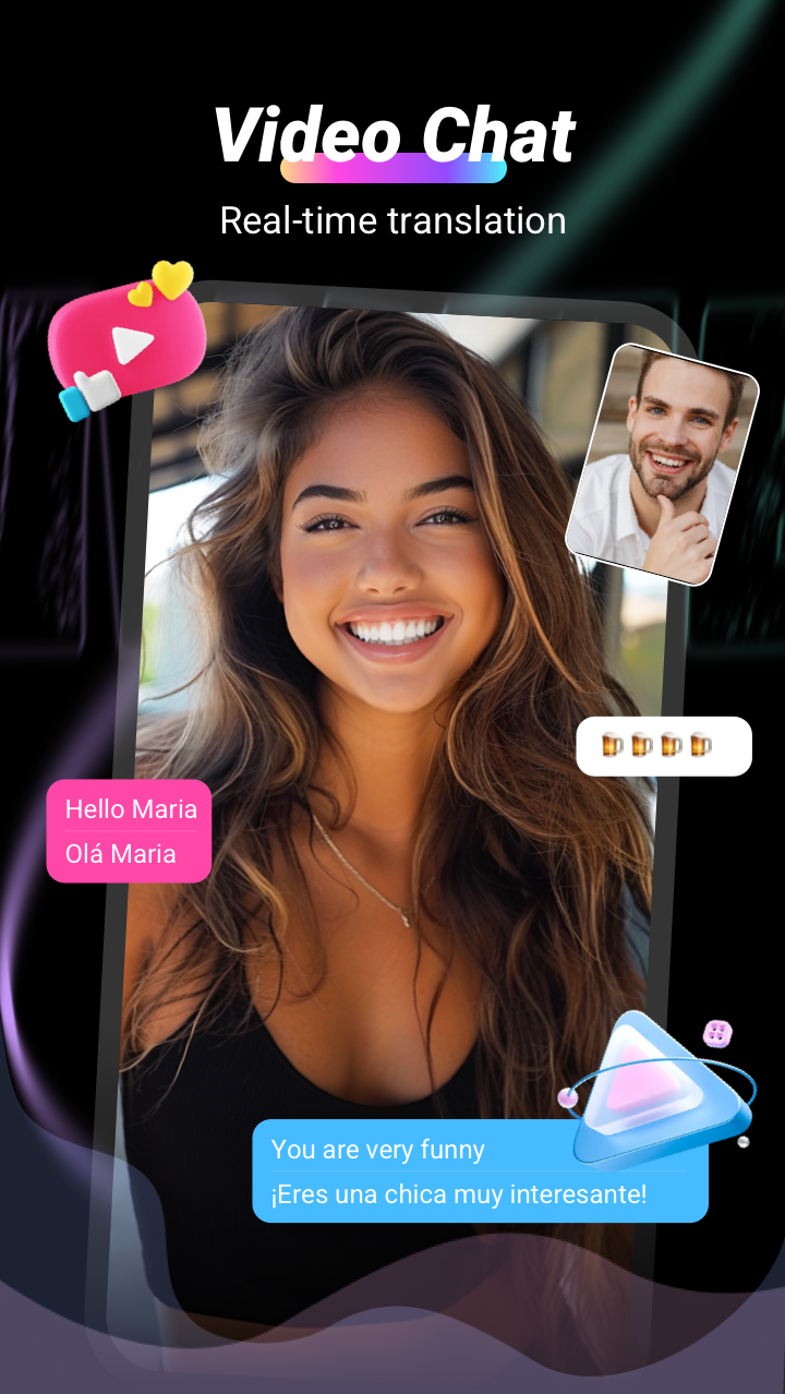 📲 Video Call - Easily connect with friends or online users through video calls, where you can exchange gifts and utilize the fun translator for an enhanced chatting experience.