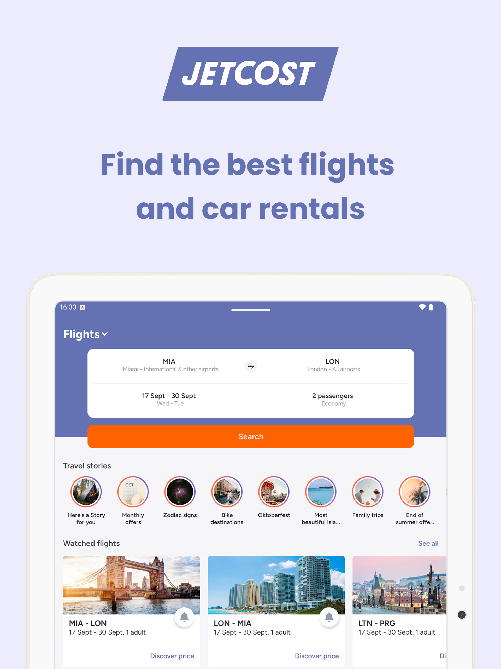 Download the Jetcost App today and compare unbeatable deals on budget-friendly flights, accommodations, and car rentals!