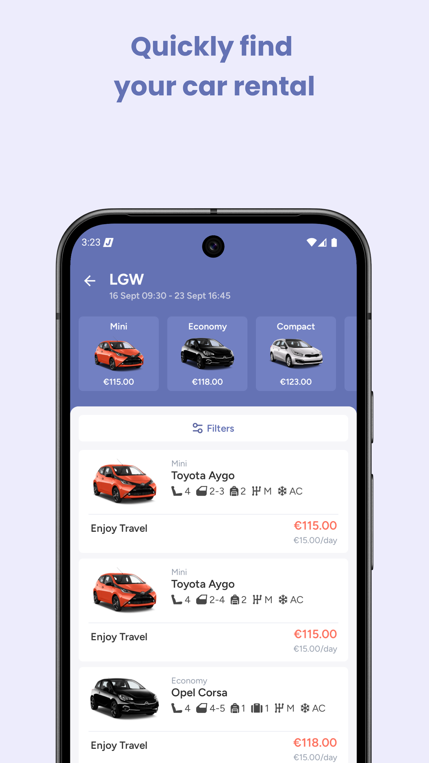 Choose the optimal car for your trip and secure it at a suitable price. Compare offerings and conclude your booking directly on the company or agency's website, eliminating any unnecessary delays.