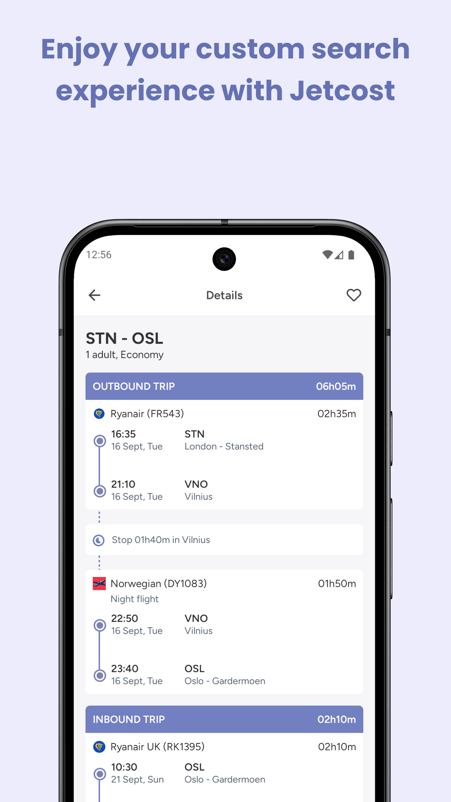 The Jetcost App enables you to effortlessly explore and evaluate different price options directly from your mobile device, at any time and location, all for free! Secure your flight ticket, hotel stay, or car rental at the most competitive rate by browsing through available deals comfortably without incurring any additional expenses. With the Jetcost App, you can save both time and money by swiftly finding exactly what you need within seconds. Don't miss out on the perfect opportunity for your upcoming journey. Get ready to jet set with ease and confidence – it's time to make travel planning a breeze!