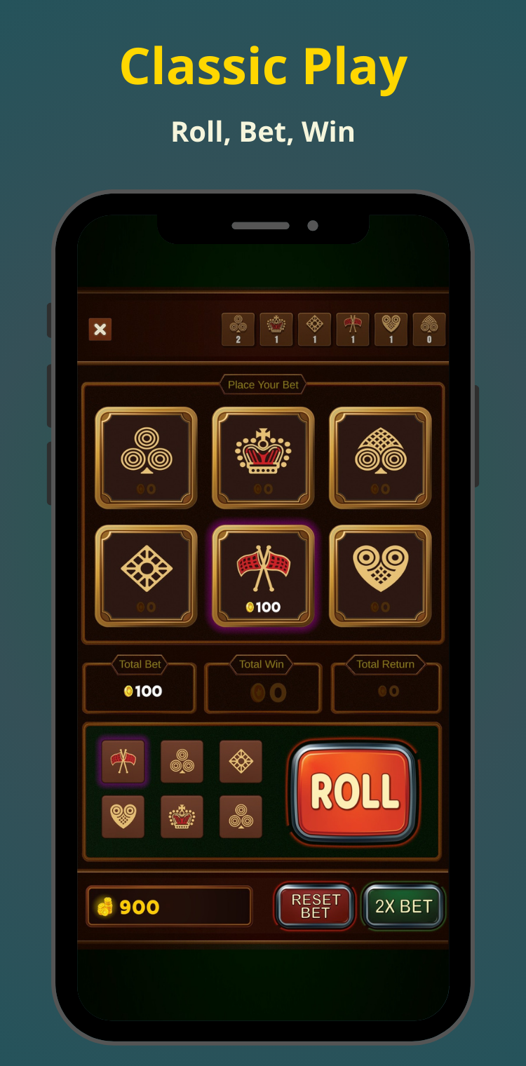- In this betting game, one person acts as the host while others place their bets on any of the six symbols.