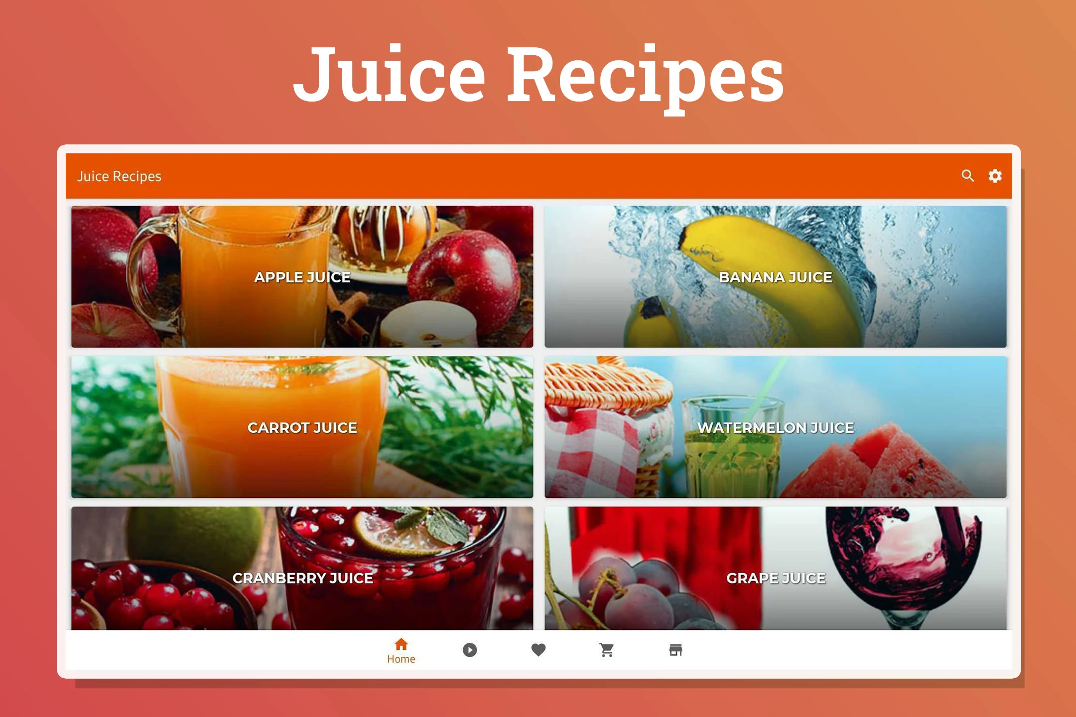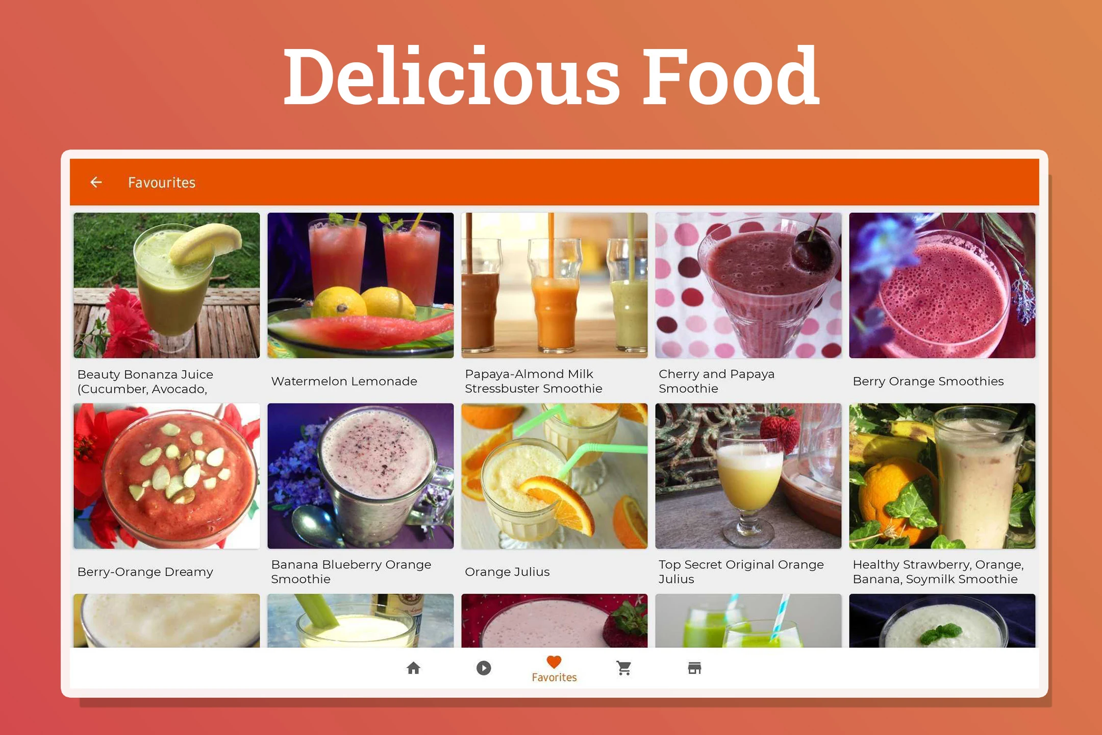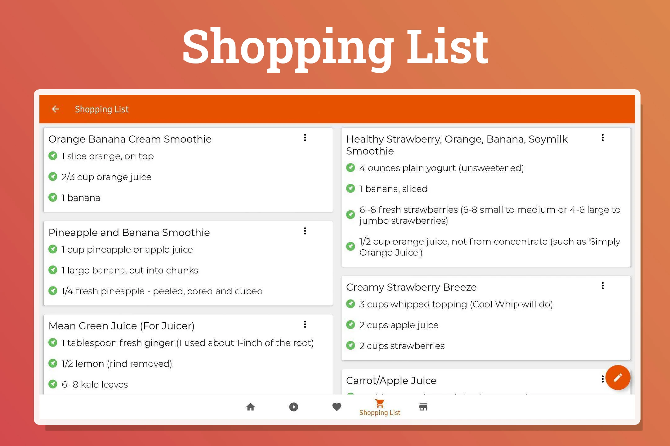 The juice recipes application allows you to compile all your preferred recipes and grocery lists for offline access.