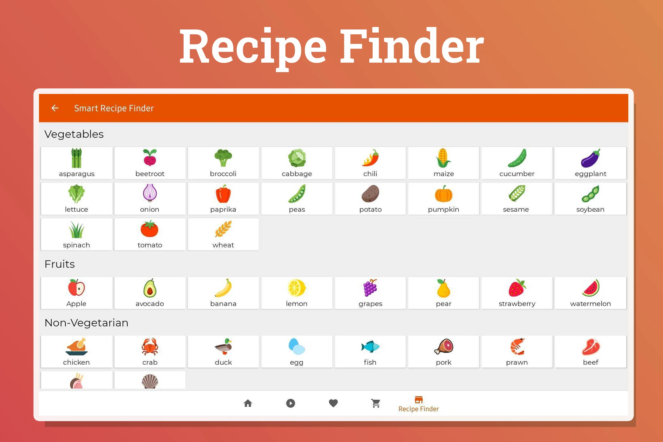 Enhance your recipe search efficiency using the kitchen feature! You can add up to five ingredients to your basket, and when ready, simply press "Find Recipes" to explore delicious juice options!
