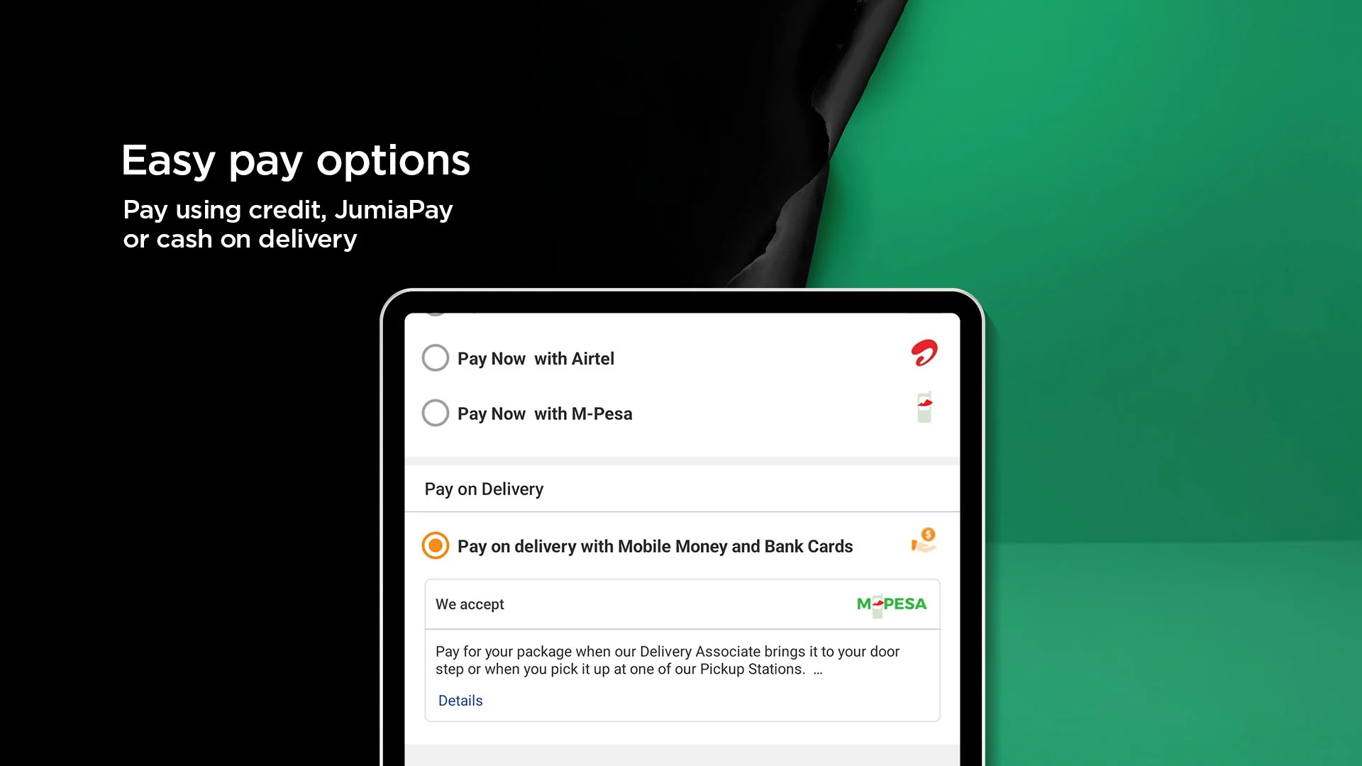Security is always a top priority when it comes to online transactions, and Jumia takes this concept very seriously. The site provides customers with secure payment options such as Visa and Mastercard debit and credit cards and cash on delivery for greater peace of mind.