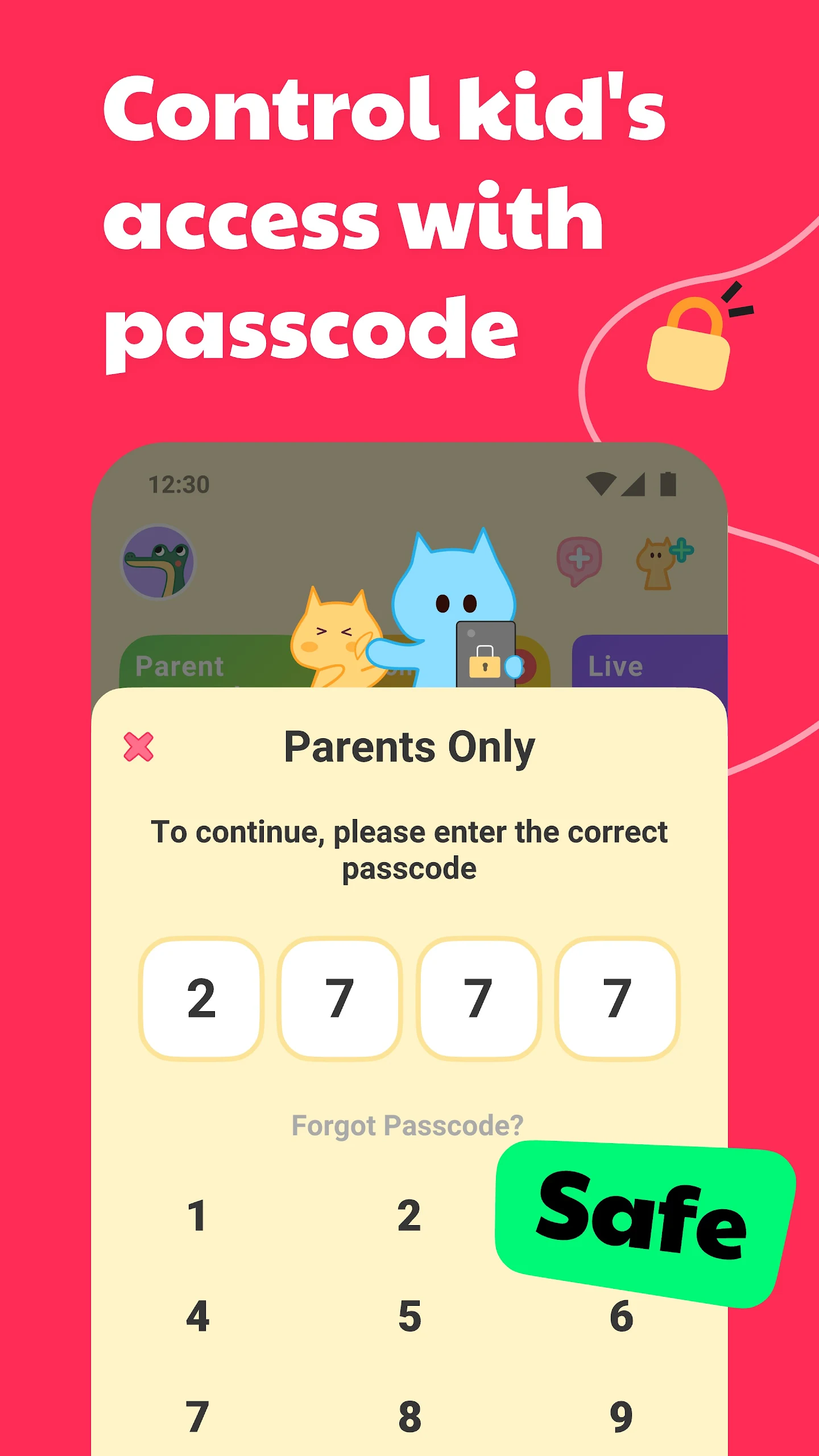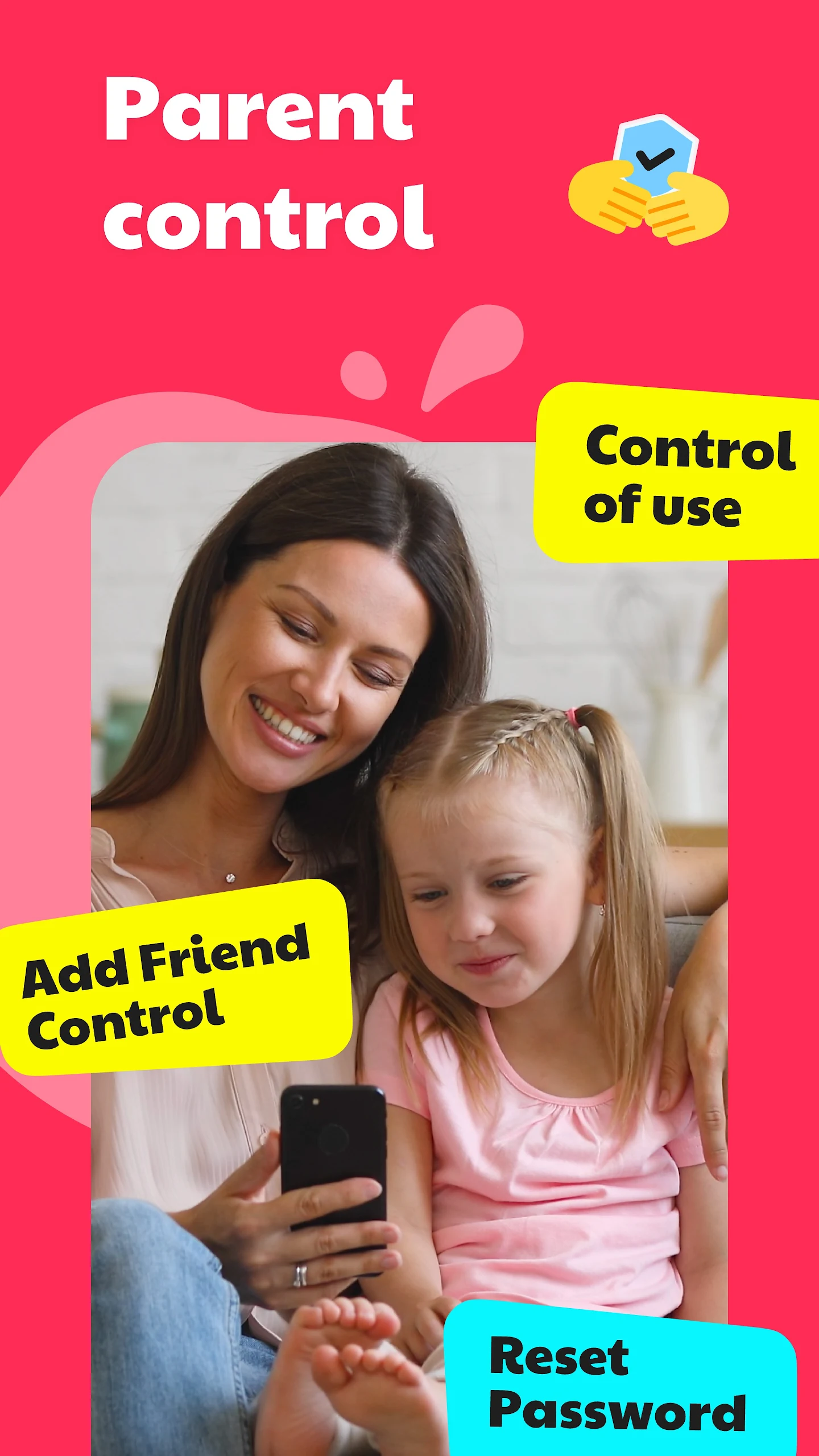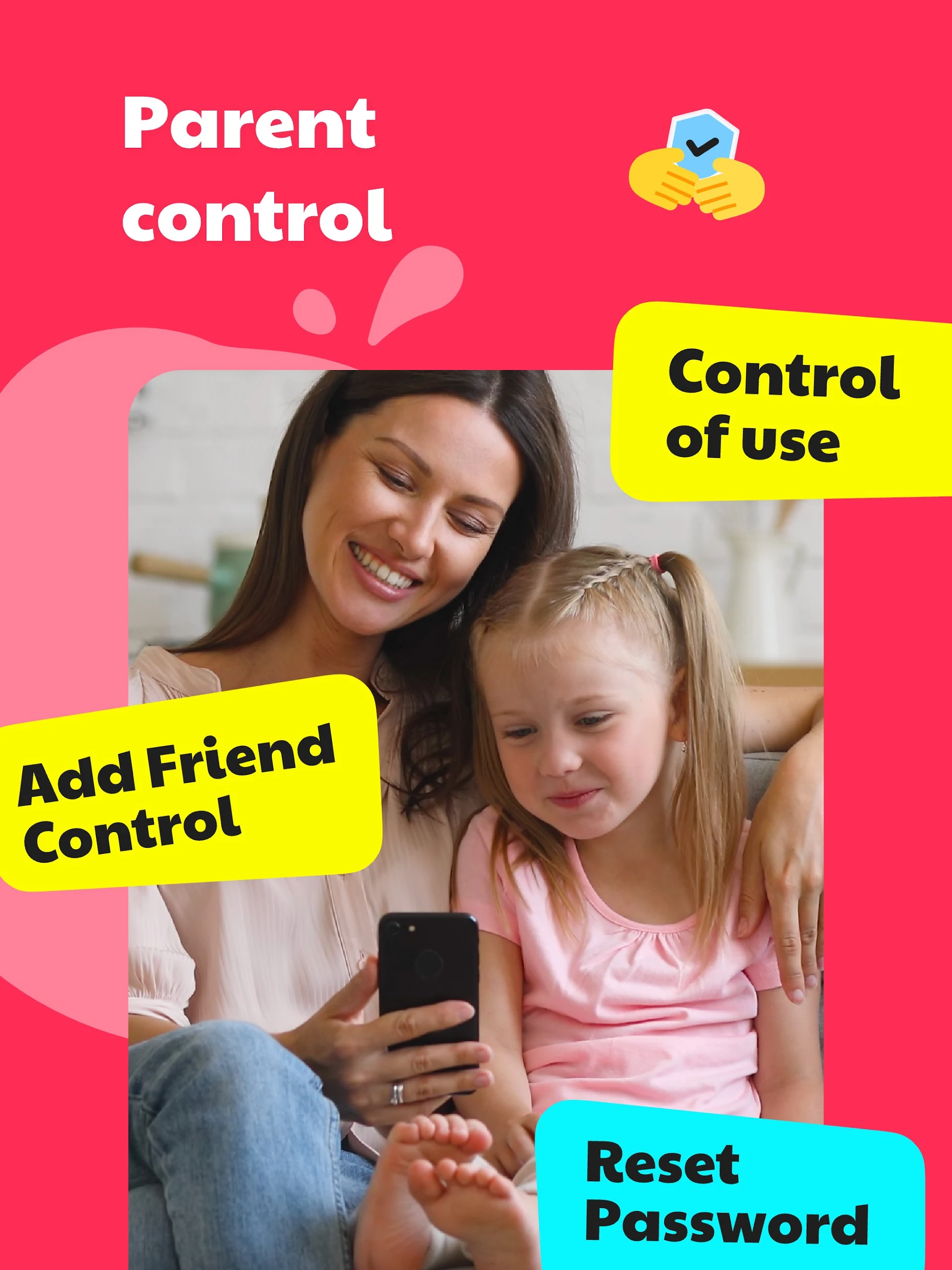 Both parties need to send a friend request to each other to become friends on the app. The parental password feature grants parents control over their child's usage, managing aspects like friend additions, viewing call records, and controlling chat time.