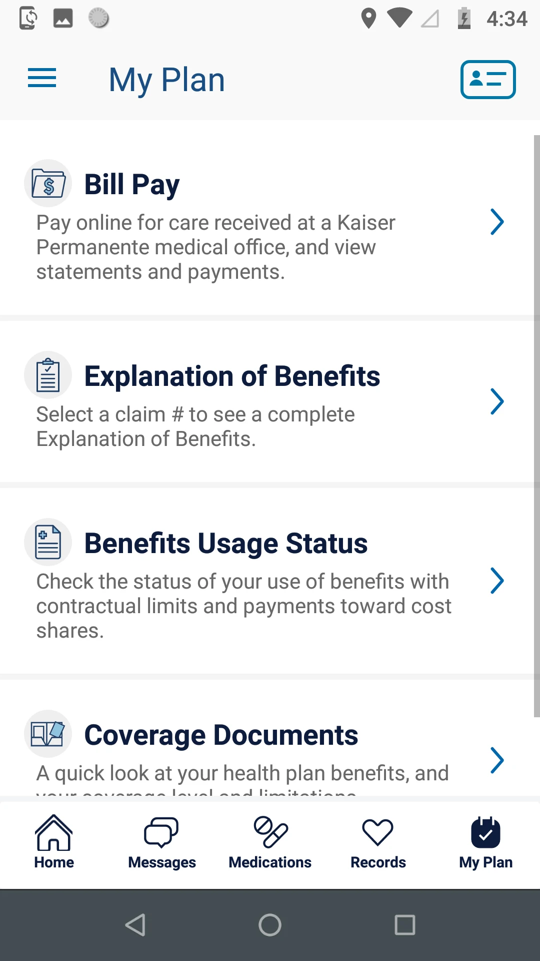 • My Plan – pay bills, review statements, understand your Explanation of Benefits, track Benefits Usage, and examine coverage documents.