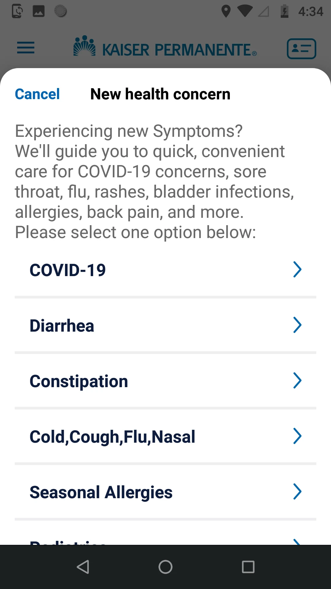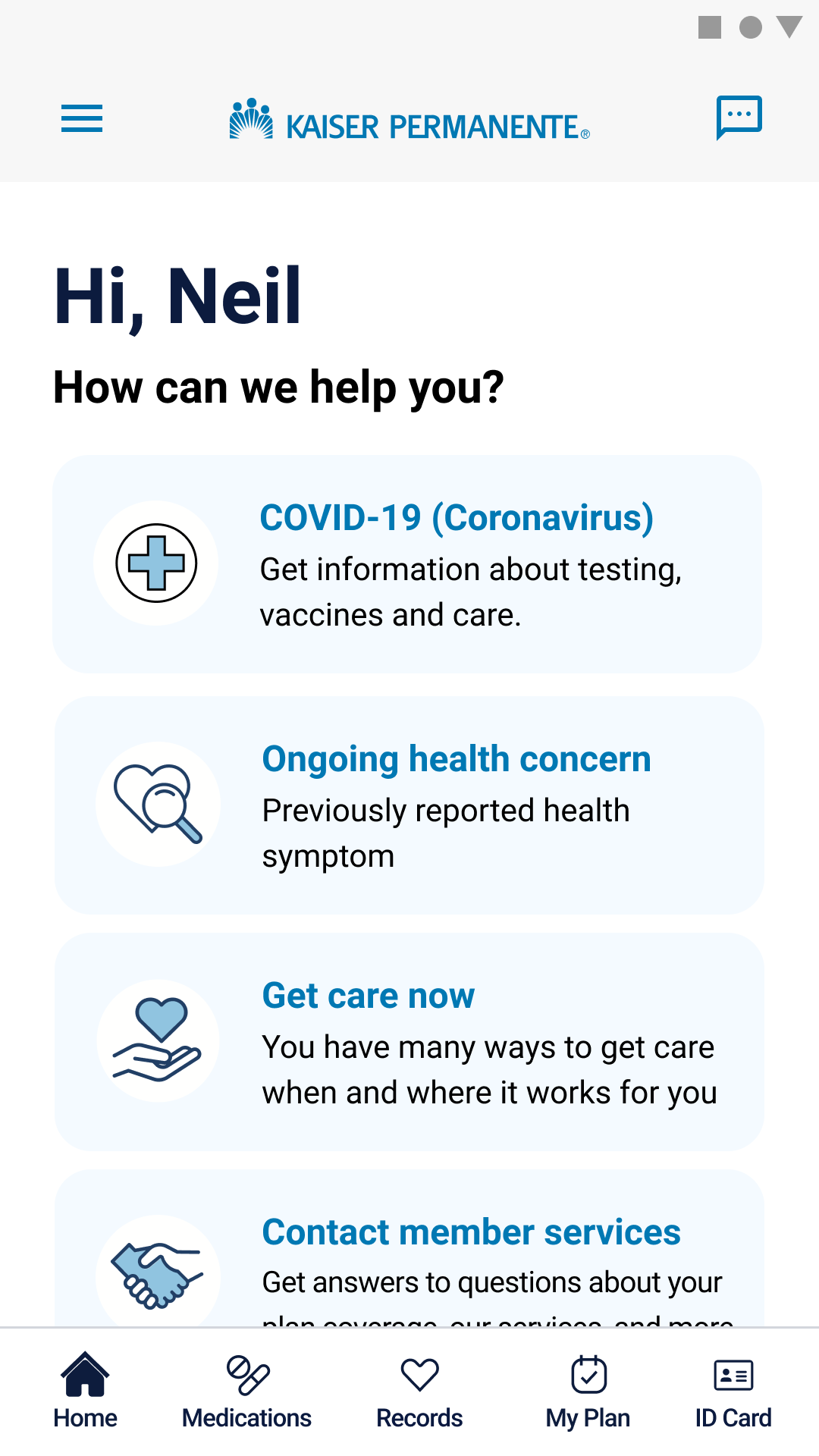 • Locations and wait times – locate the nearest Kaiser Permanente facility, arrange for phone, video, or in-person appointments, view upcoming and past visits, and check wait times for pharmacy and lab services.