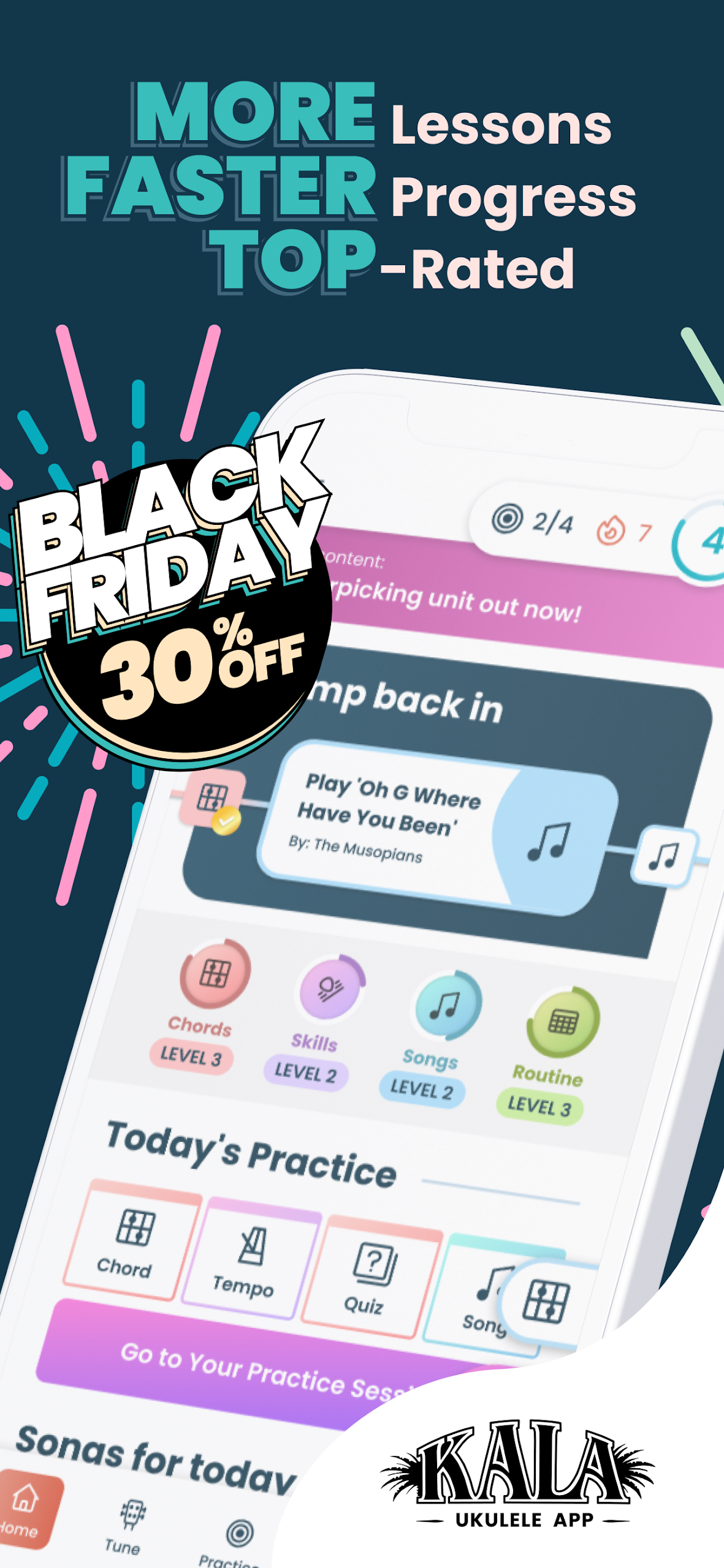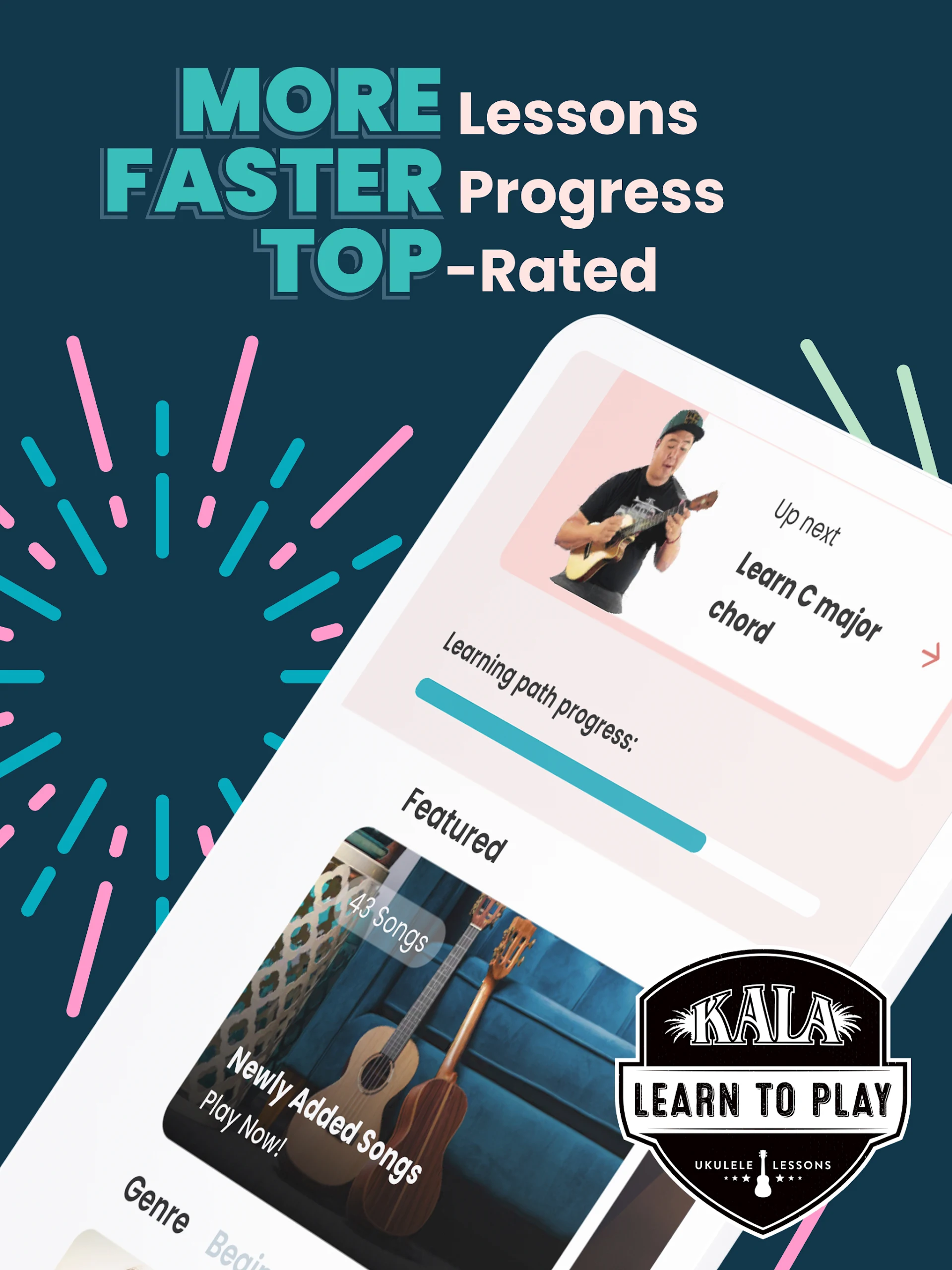Get the Kala app to start your ukulele learning journey and enjoy playing along to accessible ukulele songs using our user-friendly karaoke-style chords and free tuner today!