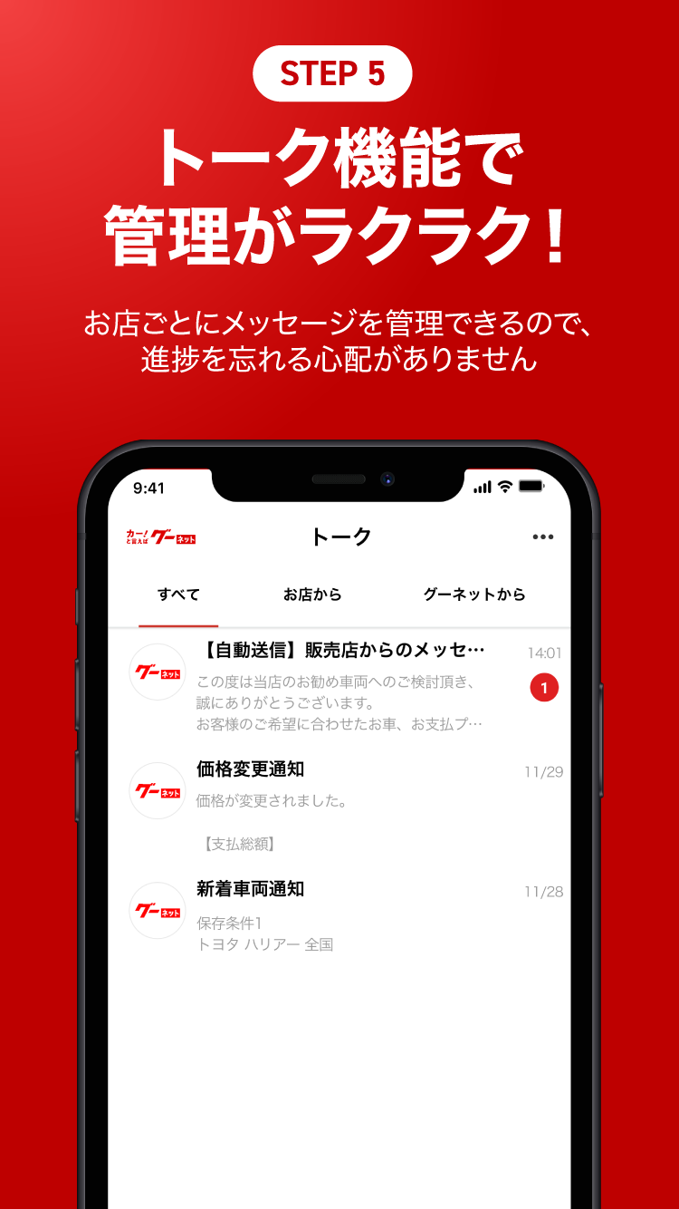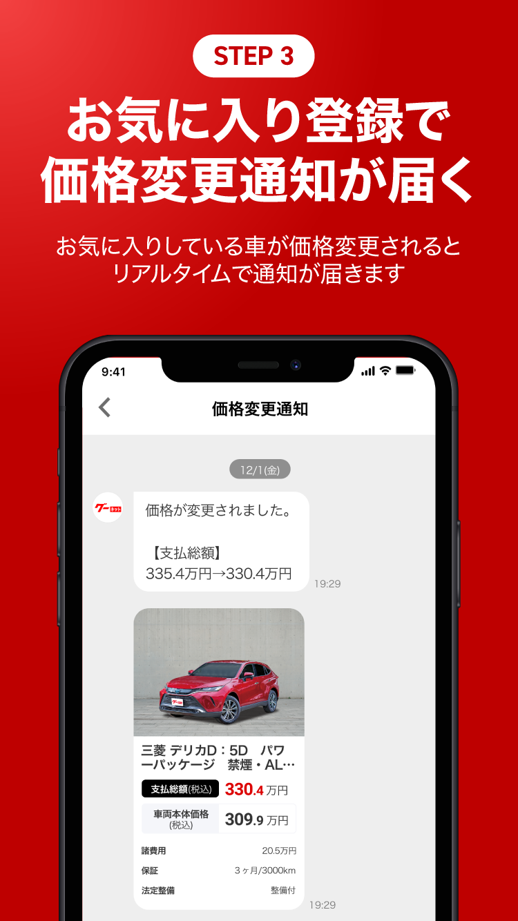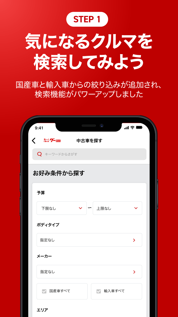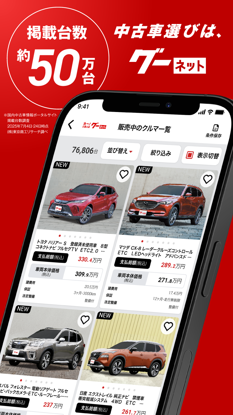 you can specify the budget, year of manufacture (initial registration), mileage, accident history, etc., by filtering the car list to select your preferred used car based on your criteria.