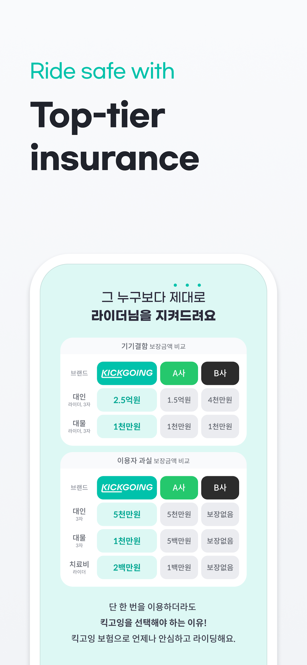 Whether navigating through bustling city streets or cruising in quieter neighborhoods, Kickgoing offers its services in various key areas including Seoul. Incheon, Busan, Daegu, and several regions in Gyeonggi. Gangwon, Gyeongnam, Gyeongbuk, and Jeonnam. It also provides robust support through a dedicated chat feature, ensuring that all inquiries and concerns are aptly addressed.